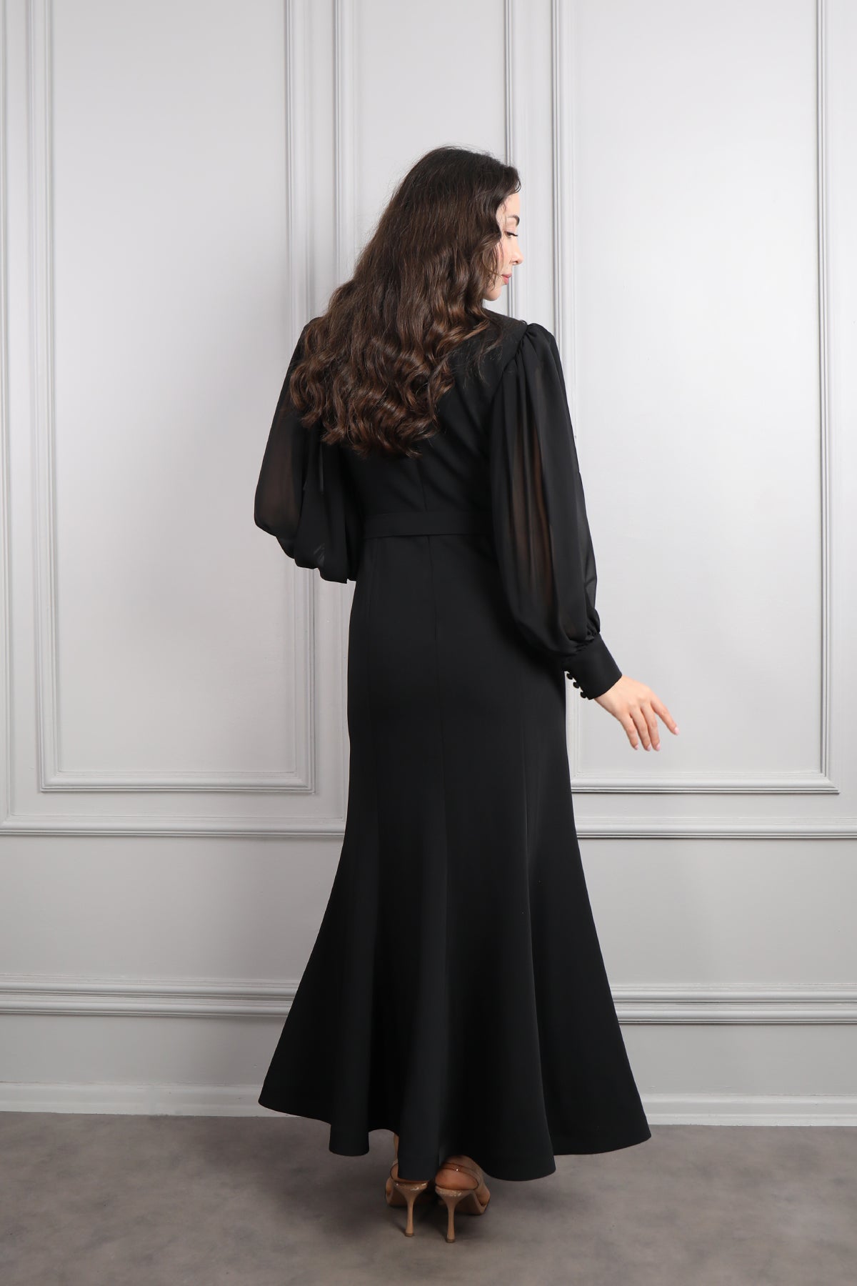 Modelin üzerindeki elbise 38 bedendir. Ürün tam kalıptır, kendi bedeninizi almanızı öneririz.