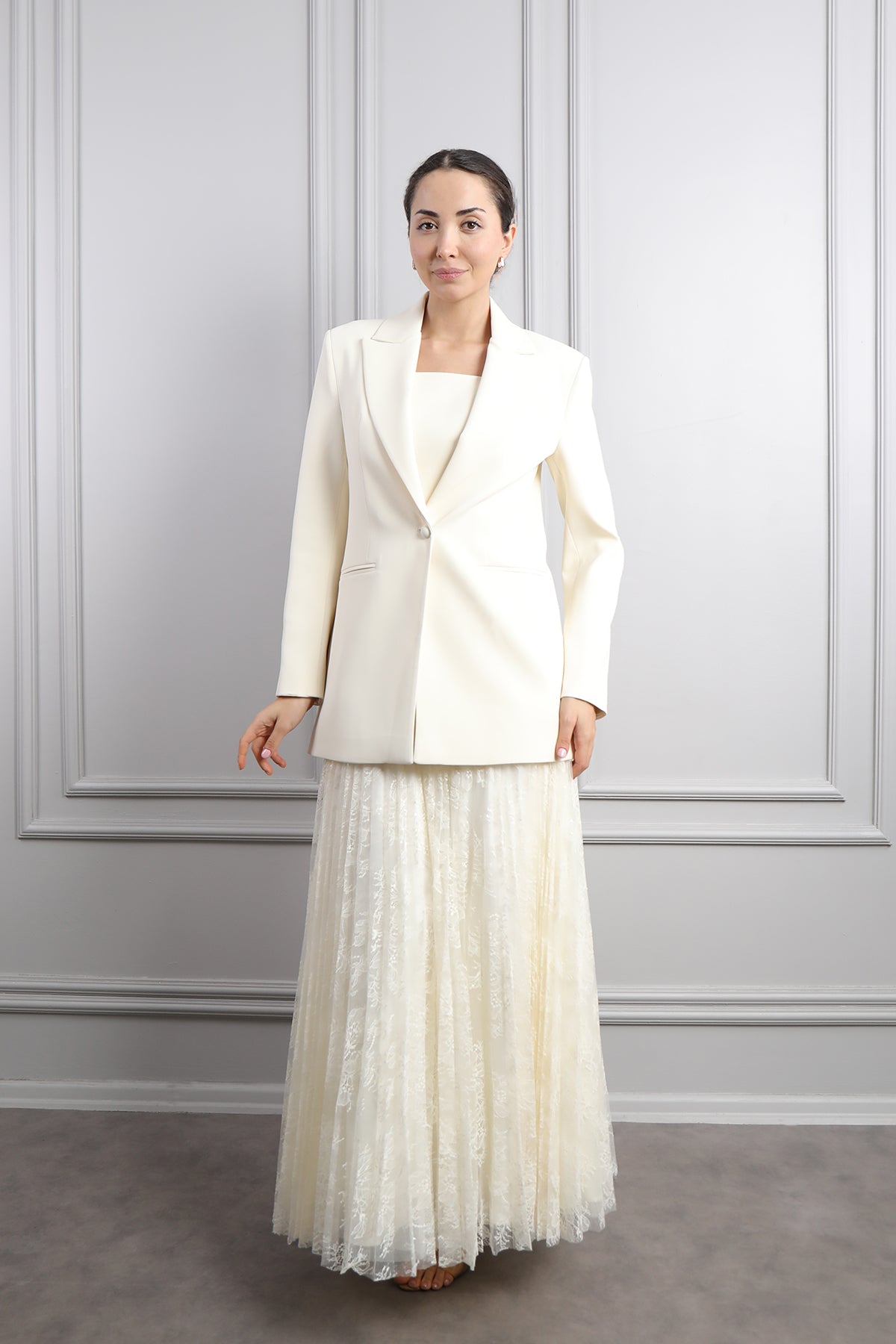 Beli kemerli ve fular detaylı tasarımıyla dikkat çeken bu şık elbise takımı, modern ve zarif bir görünüm sunuyor. Üst kısmındaki kemer detayı bele hoş bir vurgu yaparken, fular detayı kombine sofistike bir dokunuş katıyor. Takımın yanında sunulan ceketi, hem günlük hem de özel davetlerde kullanımı kolaylaştırıyor ve tarzınızı tamamlıyor. Alt kısmındaki tül detaylı etek ise elbiseye romantik bir hava katıyor. Hem rahat kesimi hem de kaliteli kumaşıyla gün boyu konfor sağlıyor. özel gün veya davetlerinizde tercih etmeniz sizler için ideal bir seçim olacaktır.
