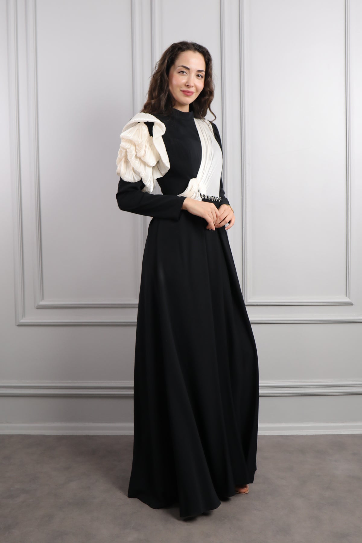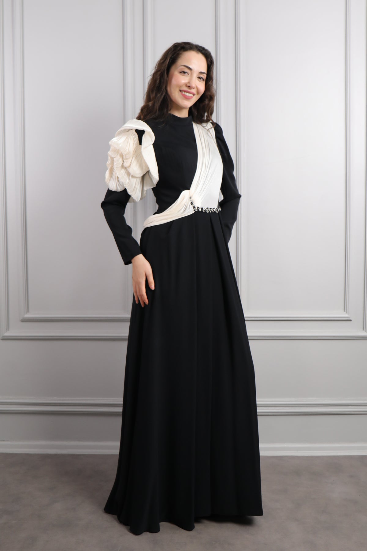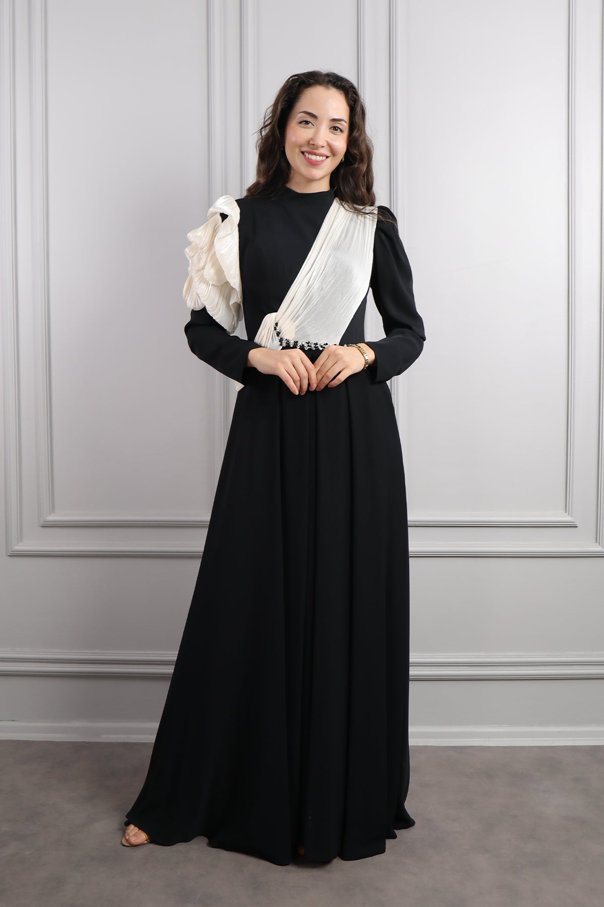 Beli Taş İşlemeli Şifon Detaylı Tesettür Elbise Siyah Özellikleri