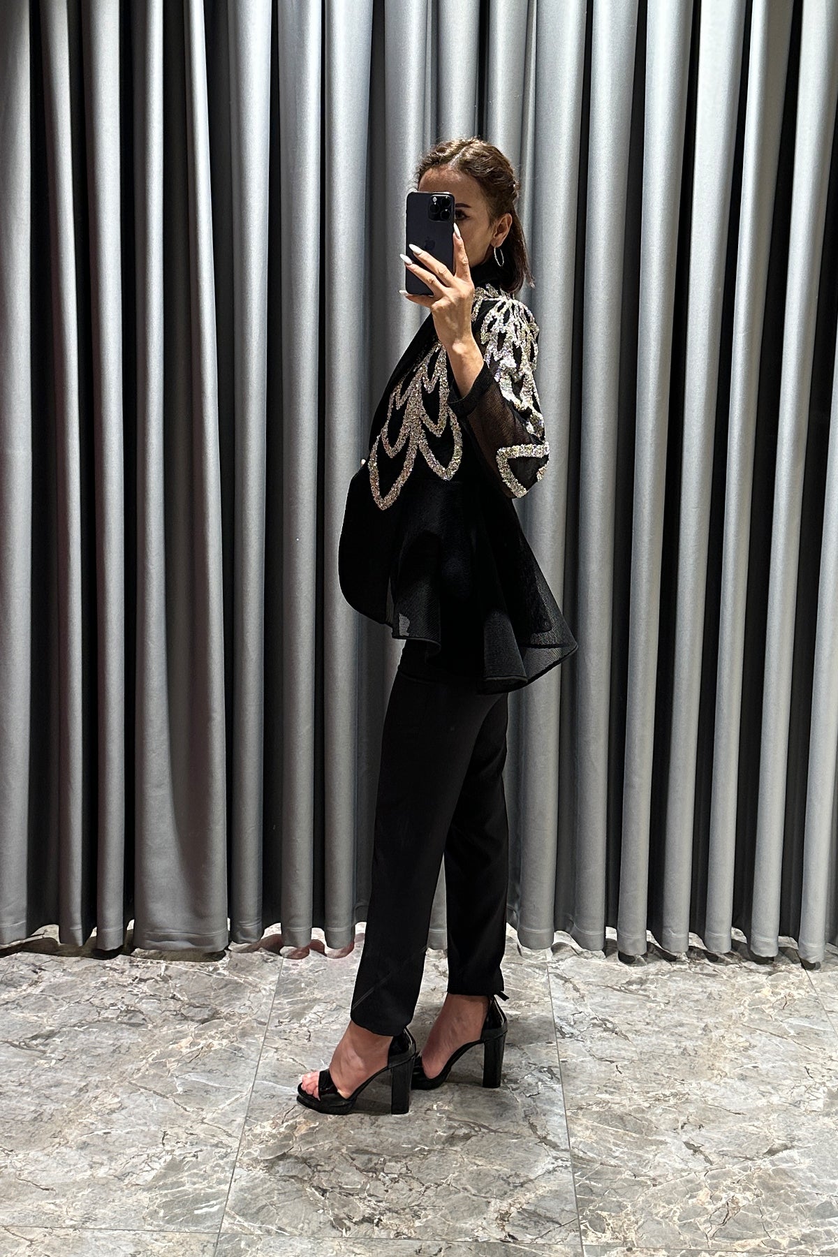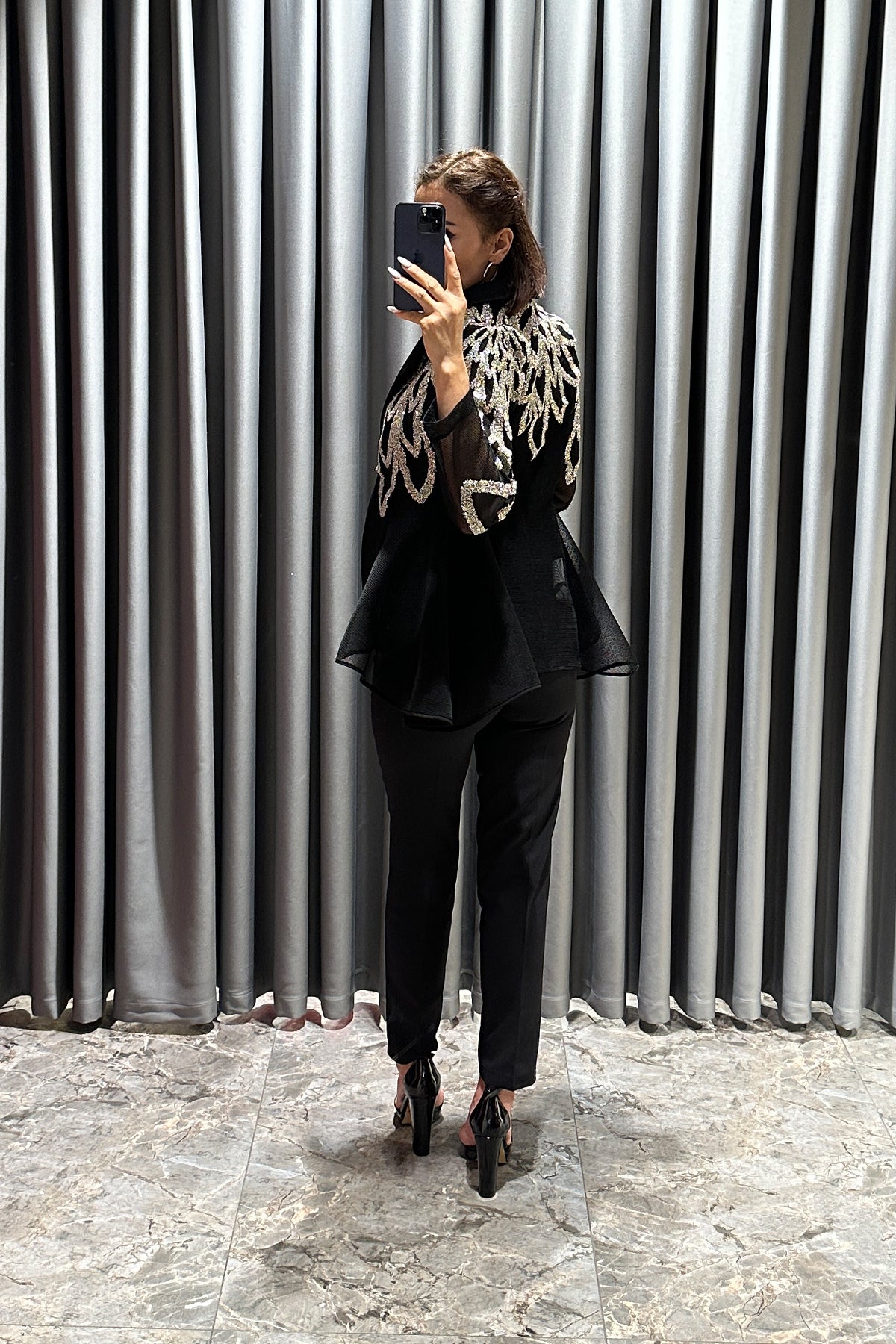 Boncuk İşlemeli Önü Düğme Detaylı Ceket Siyah