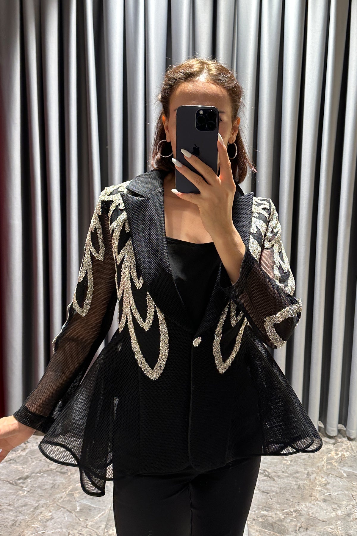 Boncuk İşlemeli Önü Düğme Detaylı Ceket Siyah Özellikleri