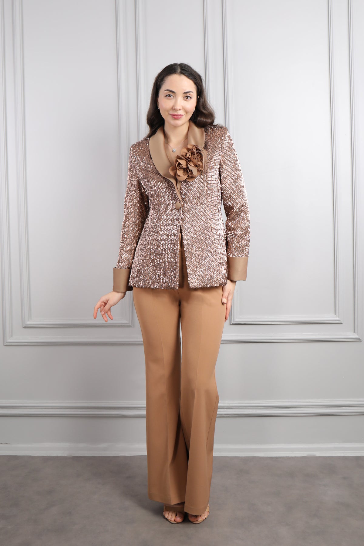 Ceketi Çiçek Detaylı Boncuk İşlemeli Pantolon Takım Fındık Özellikleri