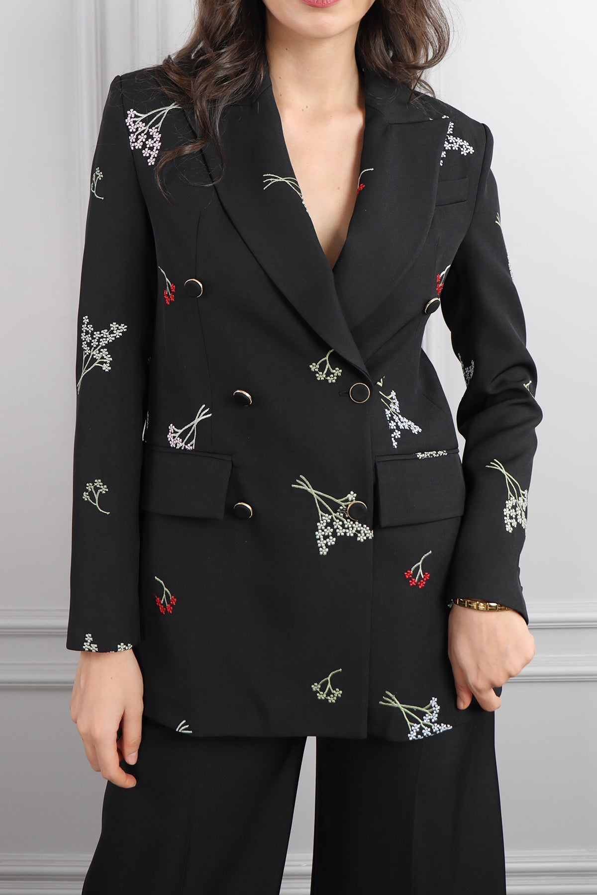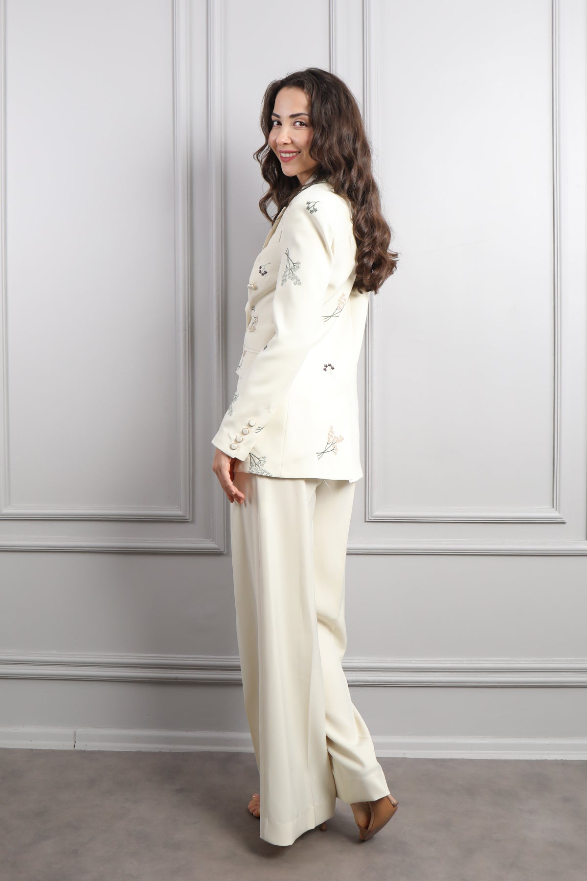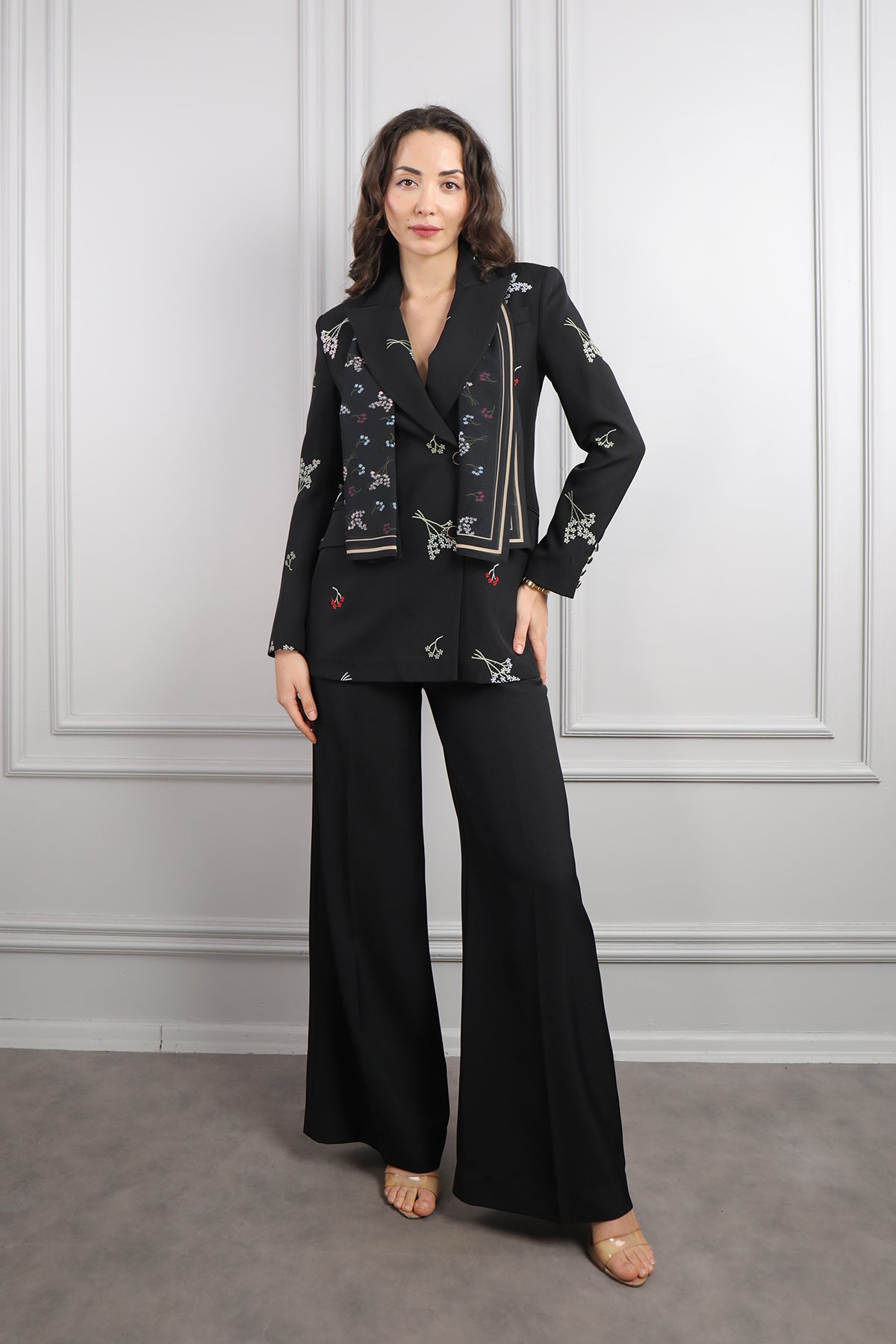 Ceketi Desenli Fular Detaylı Pantolon Takım