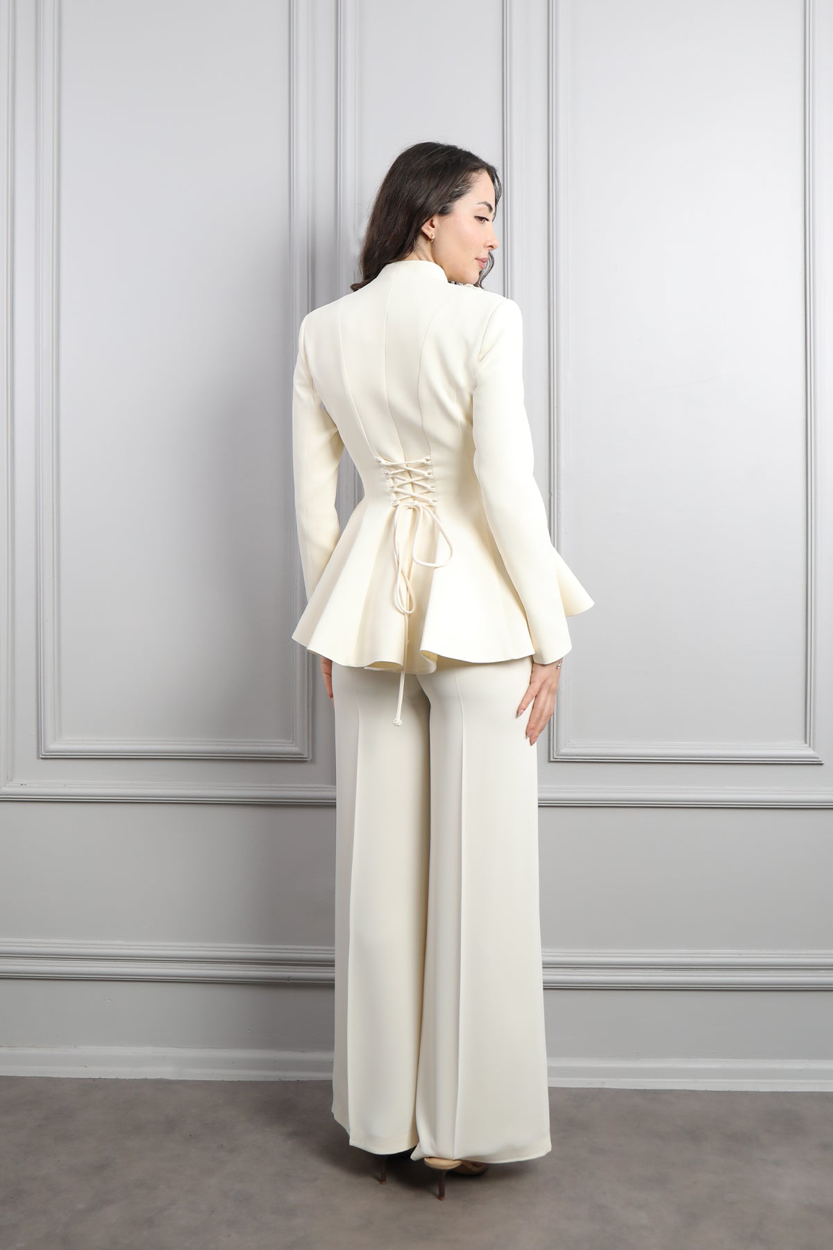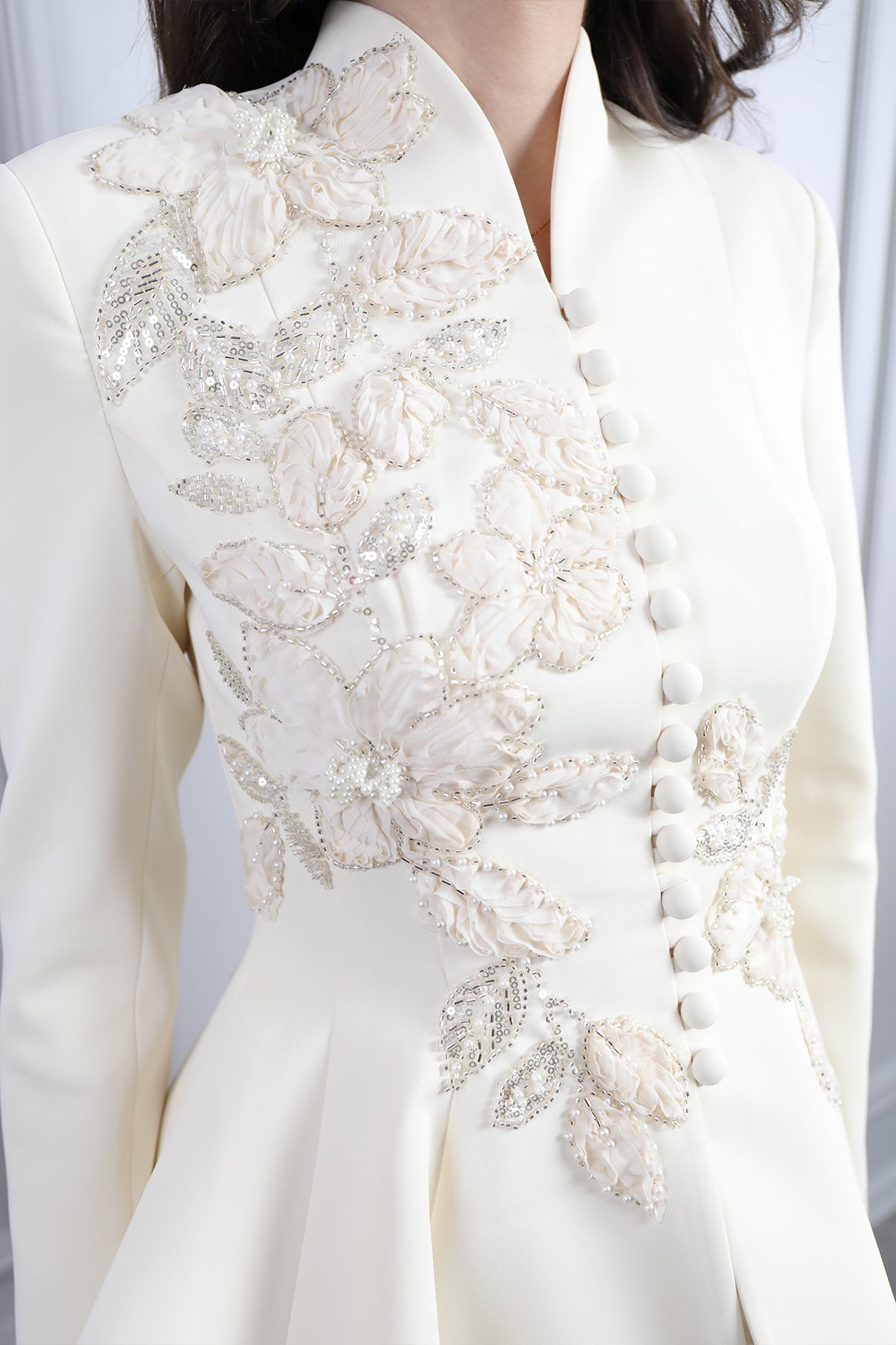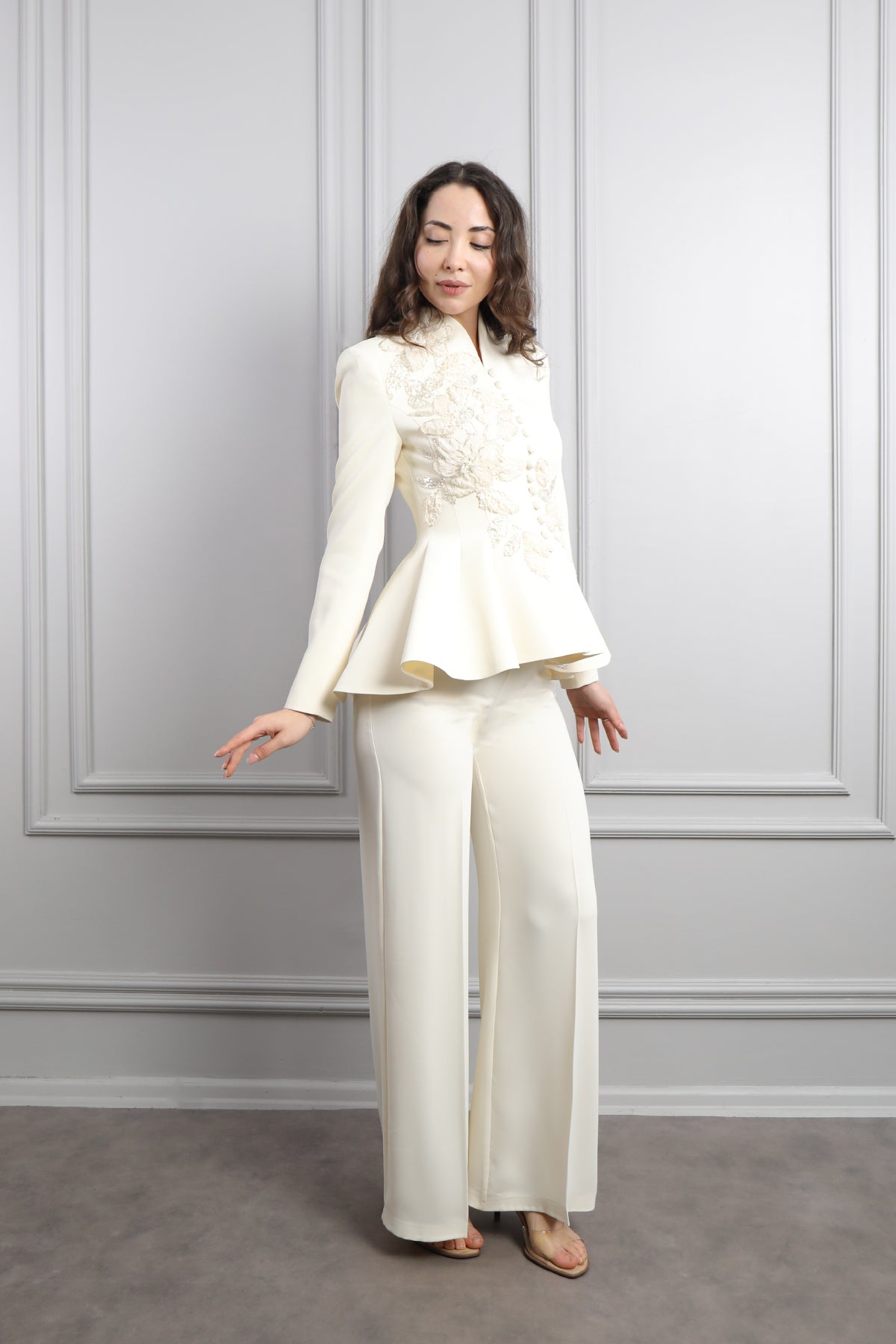 Ceketi Düğme Detaylı Çiçek İşlemeli Pantolon Takım Ekru Özellikleri