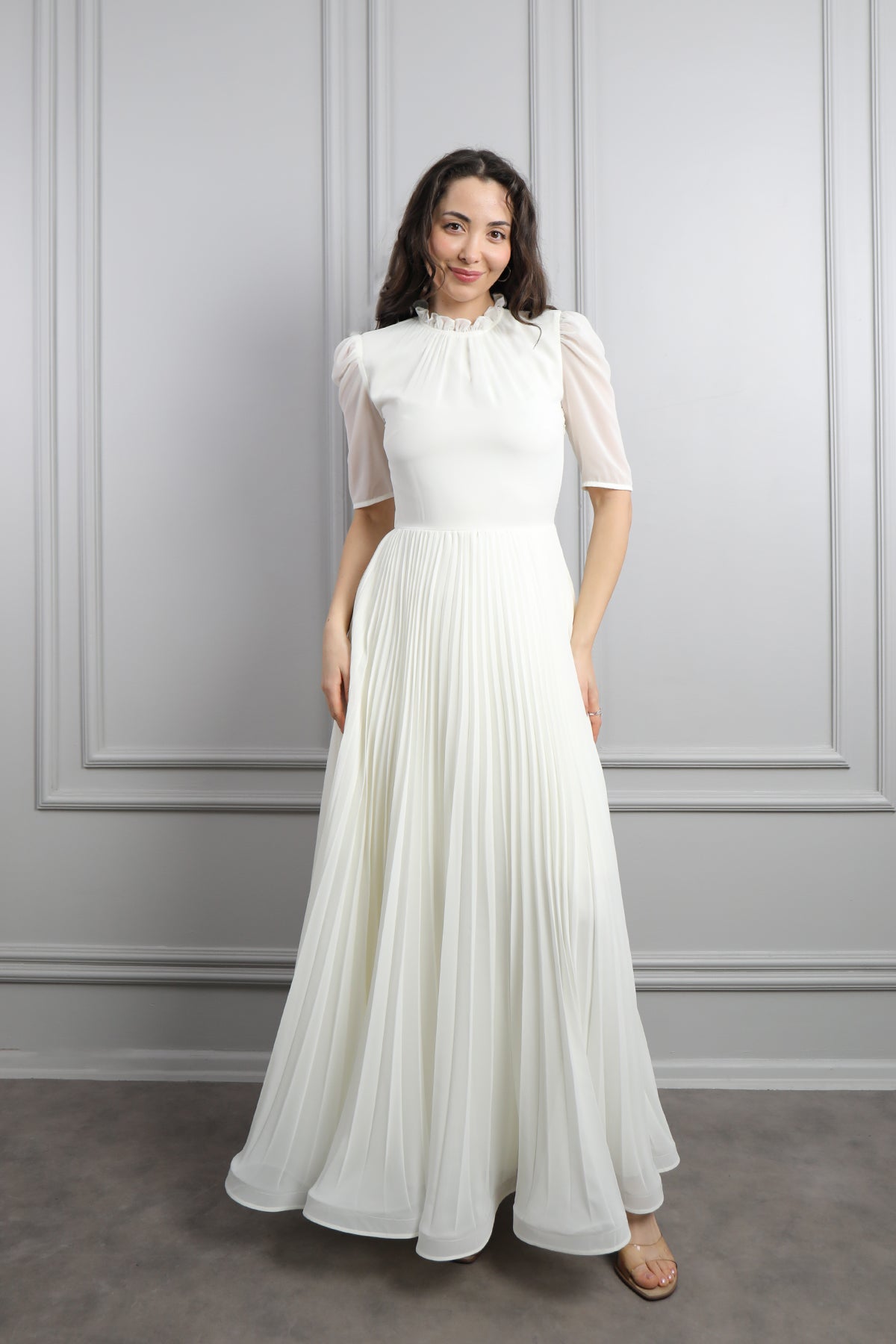 Ceketi Düğmeli Boncuk İşlemeli Pileli Elbise Takım Ekru Özellikleri