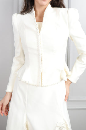 Zamansız şıklığıyla onu dönemin favorisi olmaya aday cekleti fiyonk detaylı üçlü etek takımı,klasik ve modern çizgiyi mükemmel biçimde buluşturuyor. Fiyonk detaylı ceket tasarımı, takıma zarif ve feminen bir dokunuş katarken; Üçlü kombin yapısı (ceket, bluz ve etek) çok yönlü bir kullanım imkanı sunuyor. Siyah rengin asaleti, hem iş ortamlarında hem de özel davetlerde etkileyici bir görünüm sağlar. Dökümlü kumaşı ve yerleşimi oturma bölümü, konforlu bir kullanım sunarken, şık fiyonk detayı tasarımı sıradanlık geliyor ve bir tarza dönüşüyor.