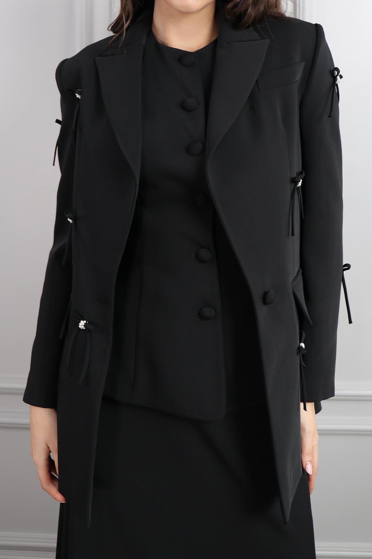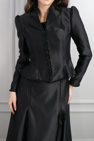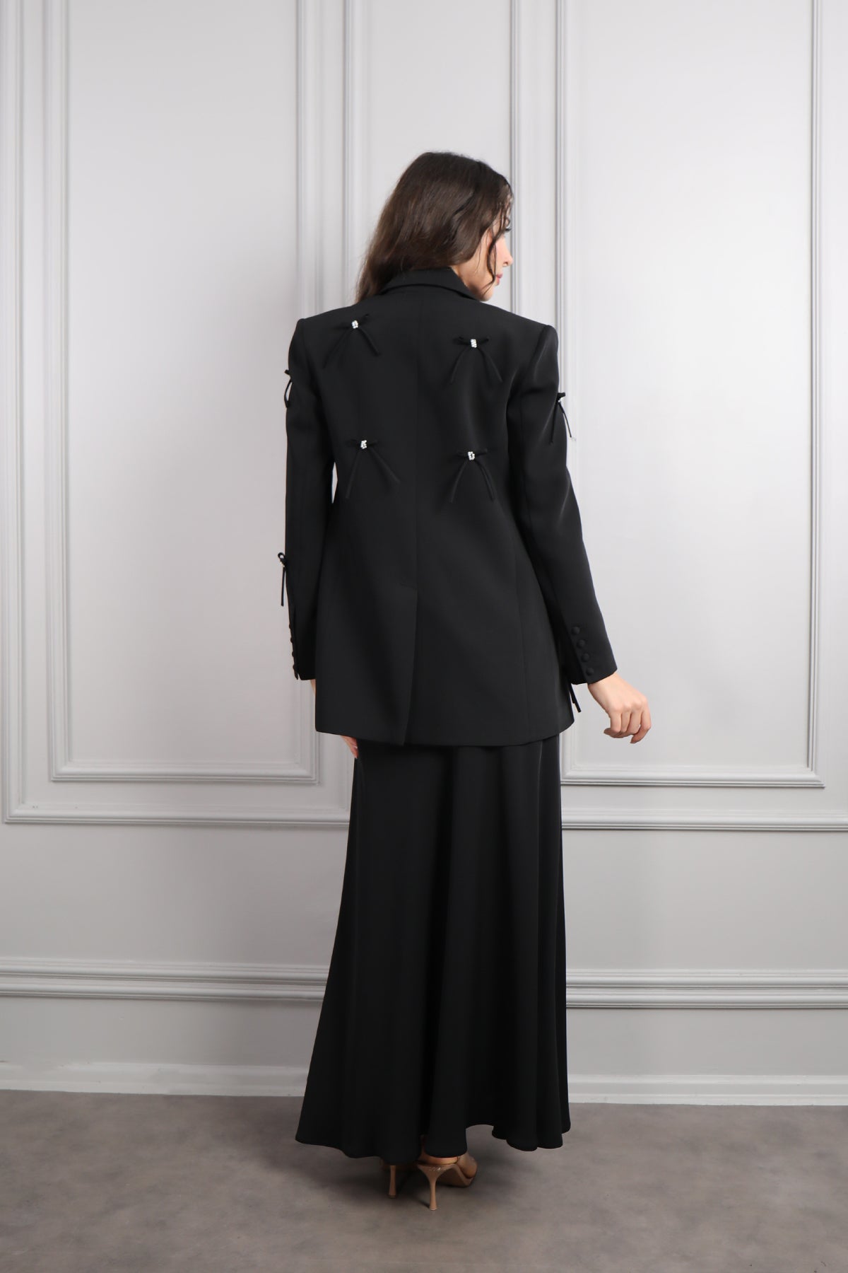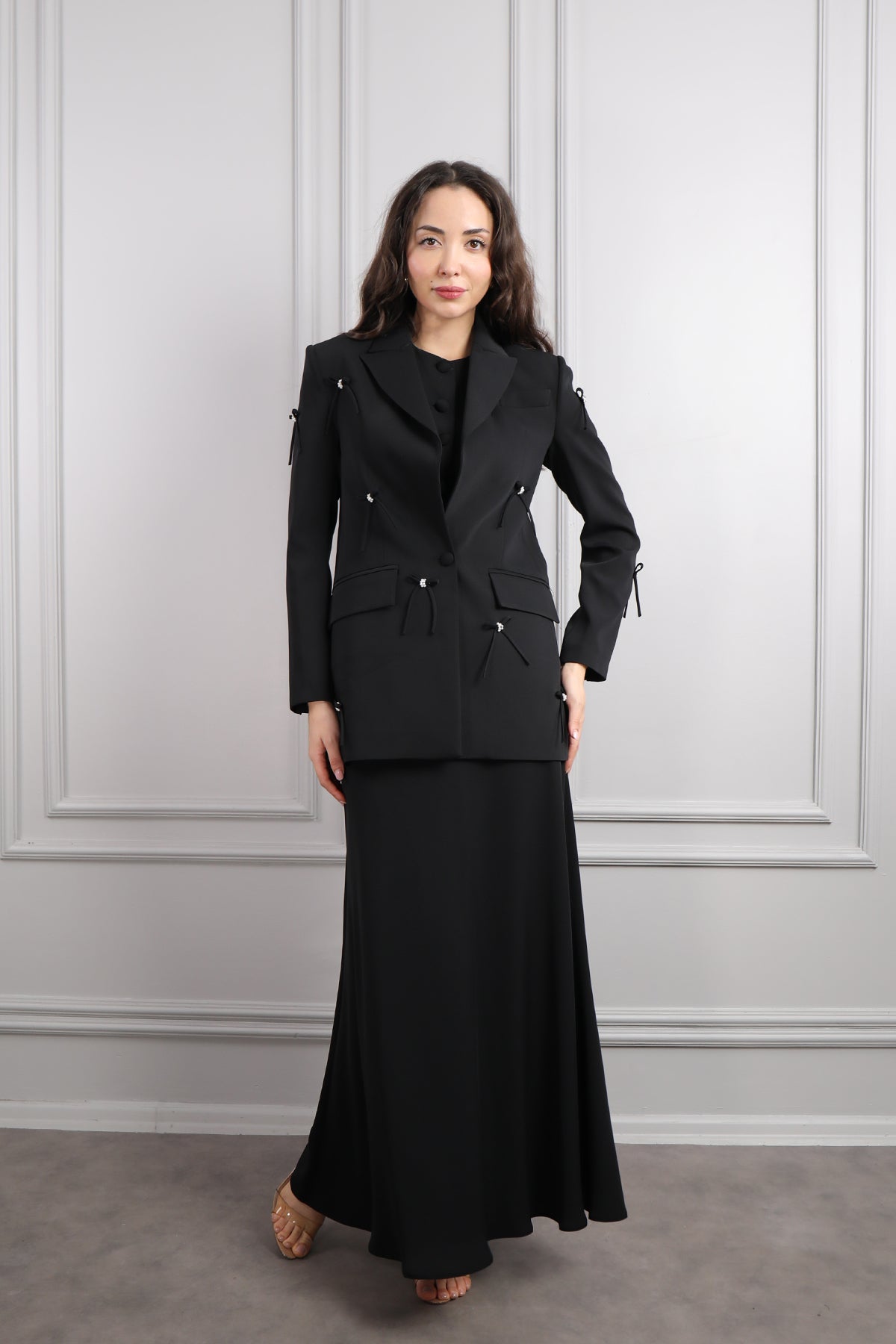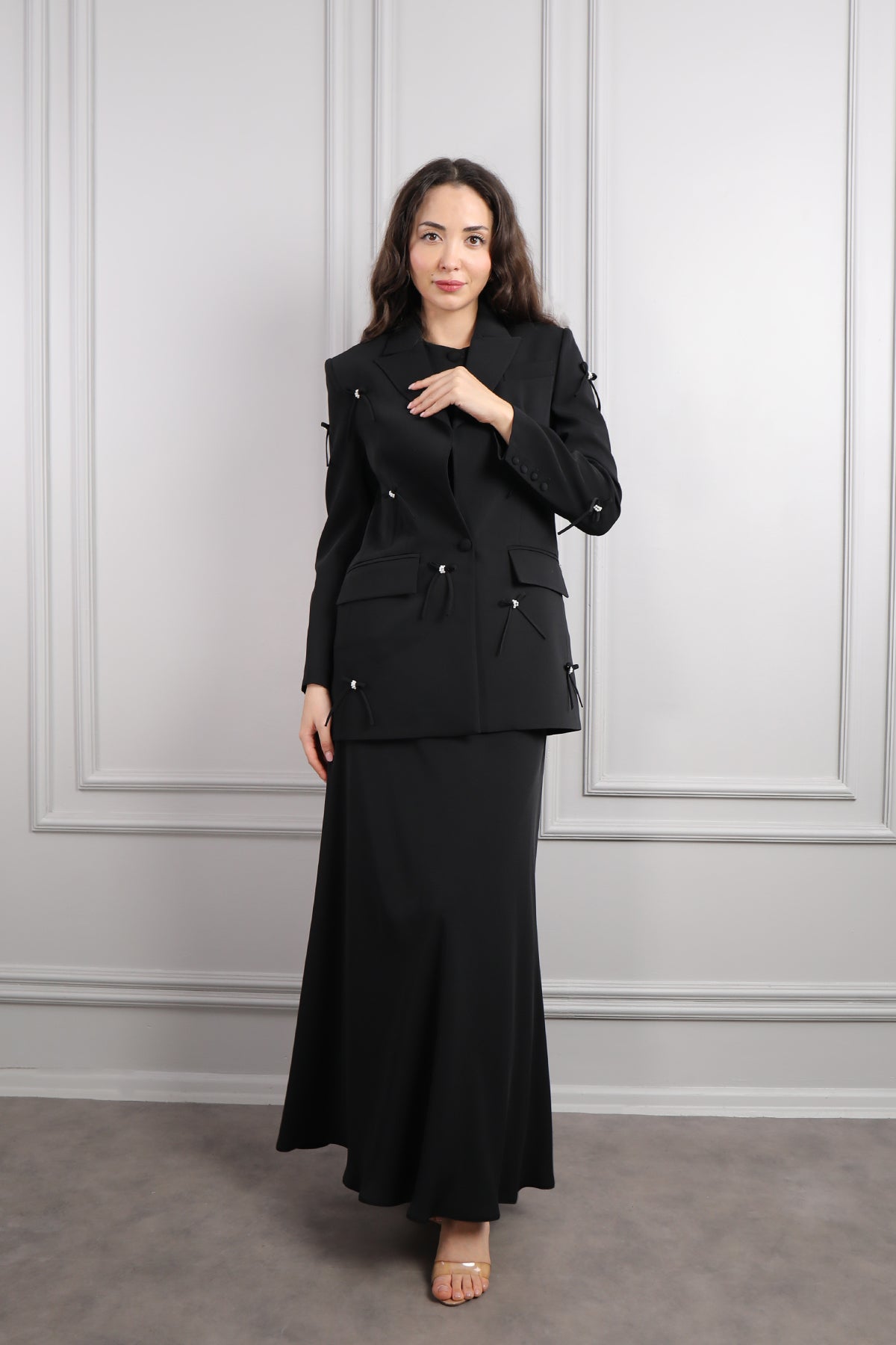 Ceketi Fiyonk Detaylı Üçlü Etek Takım Siyah