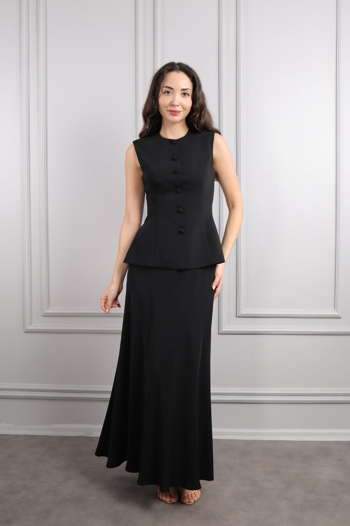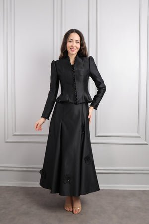 Ceketi Fiyonk Detaylı Üçlü Etek Takım Siyah Özellikleri