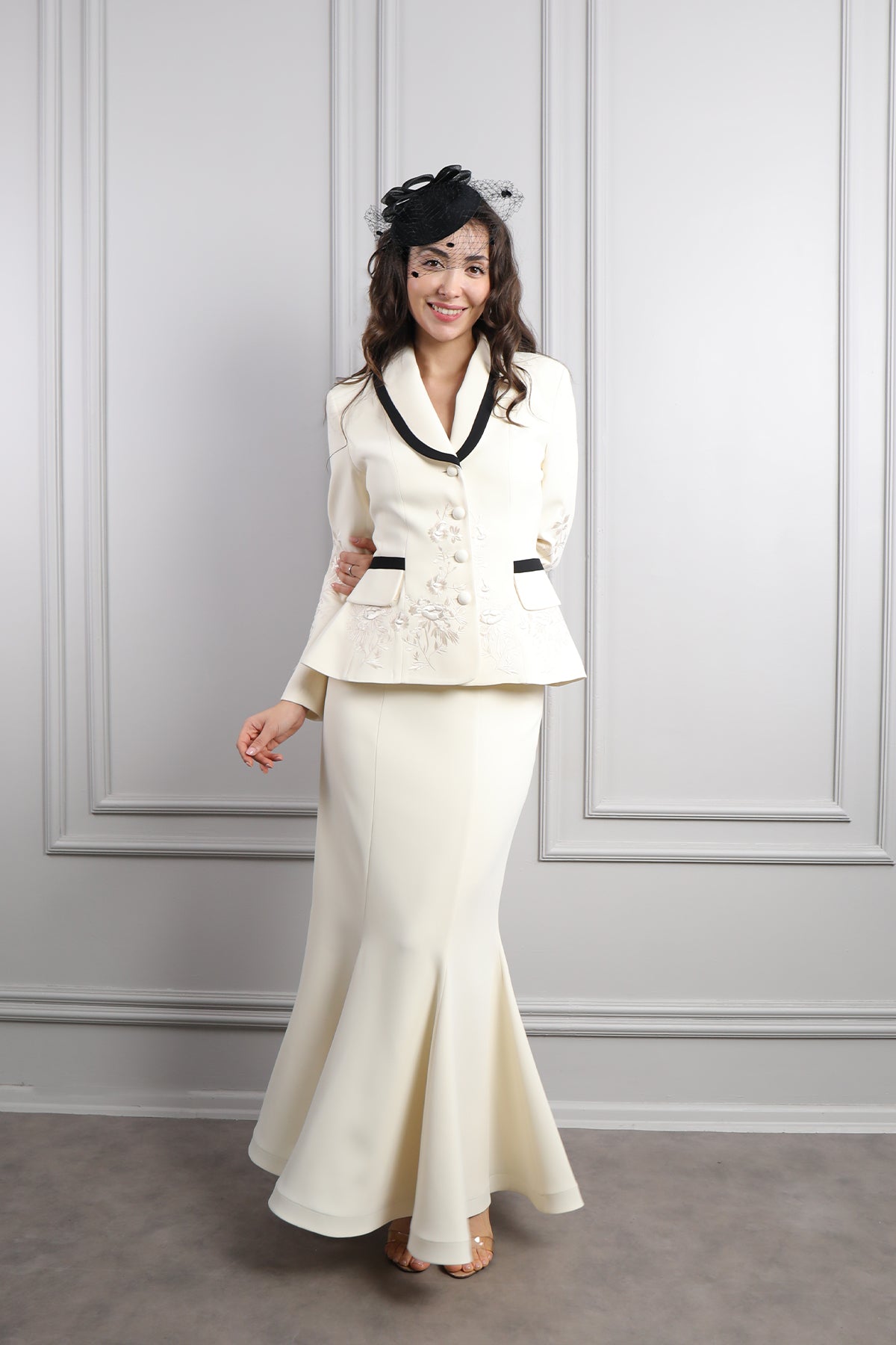 Ceketi İşlemeli Saç Aksesuar Detaylı Etek Takım Ekru