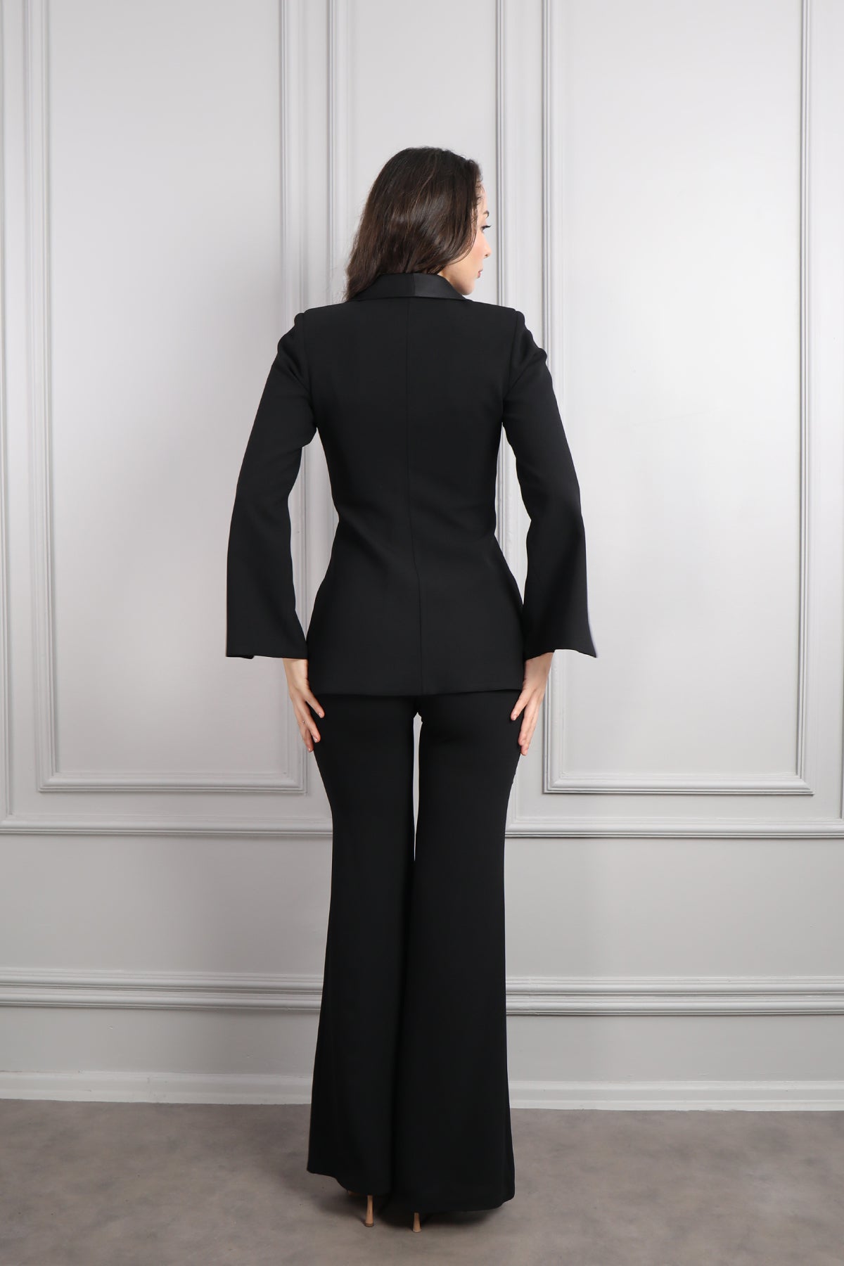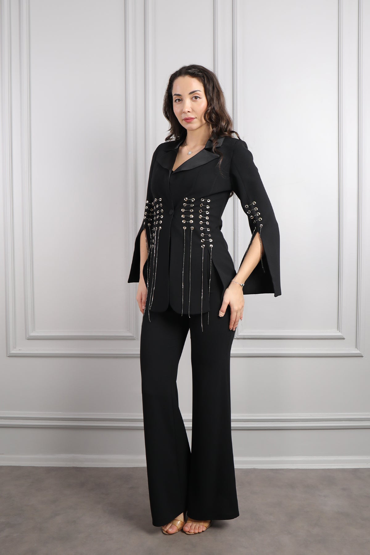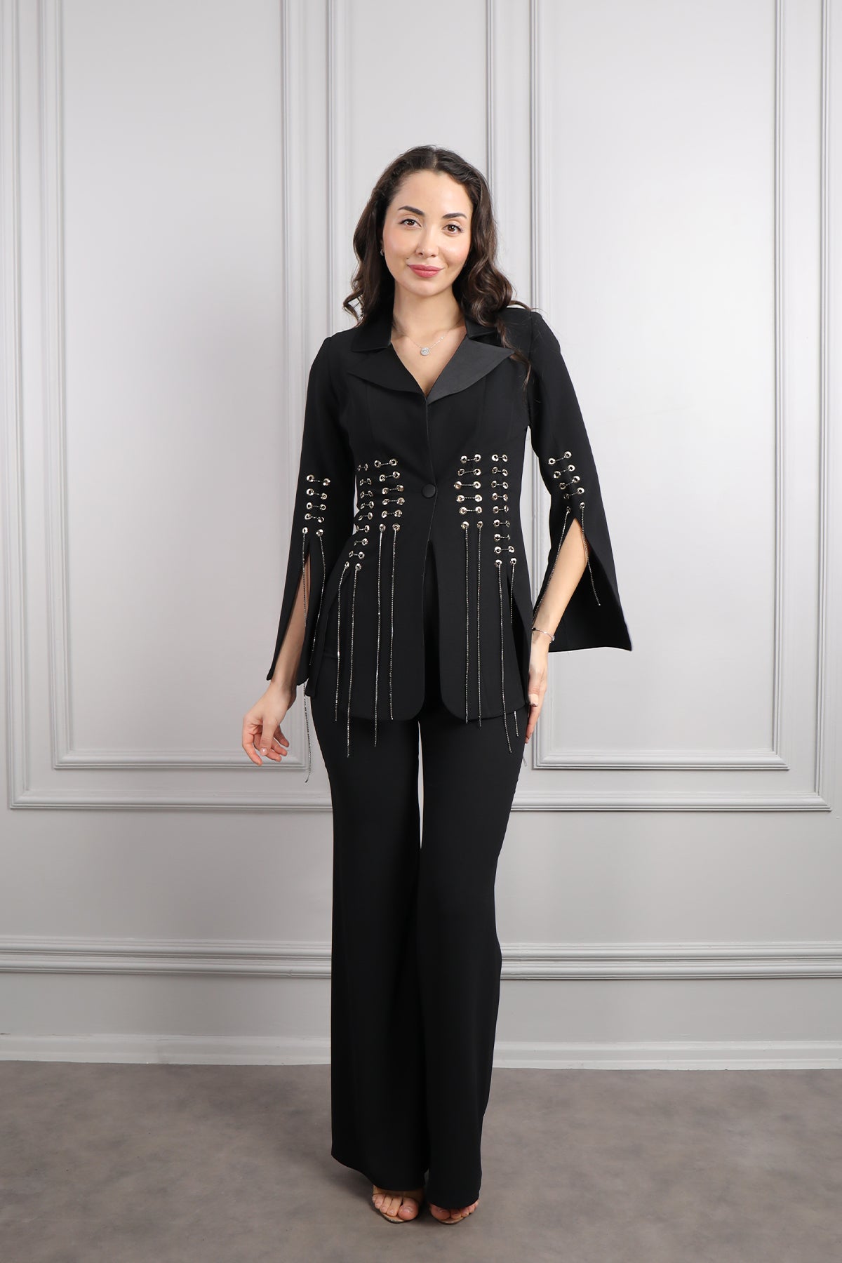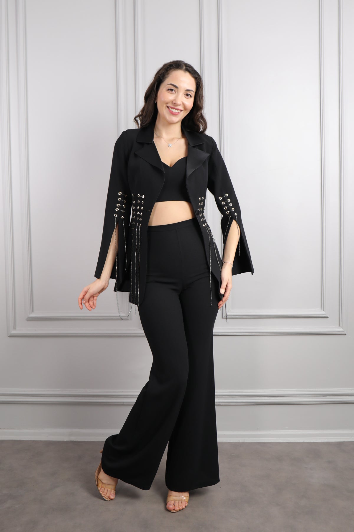 Ceketi Metal Bağlama Detaylı Pantolon Takım Siyah