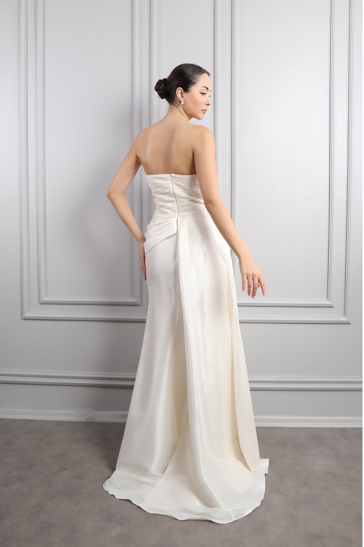 Derin Dekolteli Beli Çiçek Detaylı Pelerinli Büyük Beden Abiye Beyaz