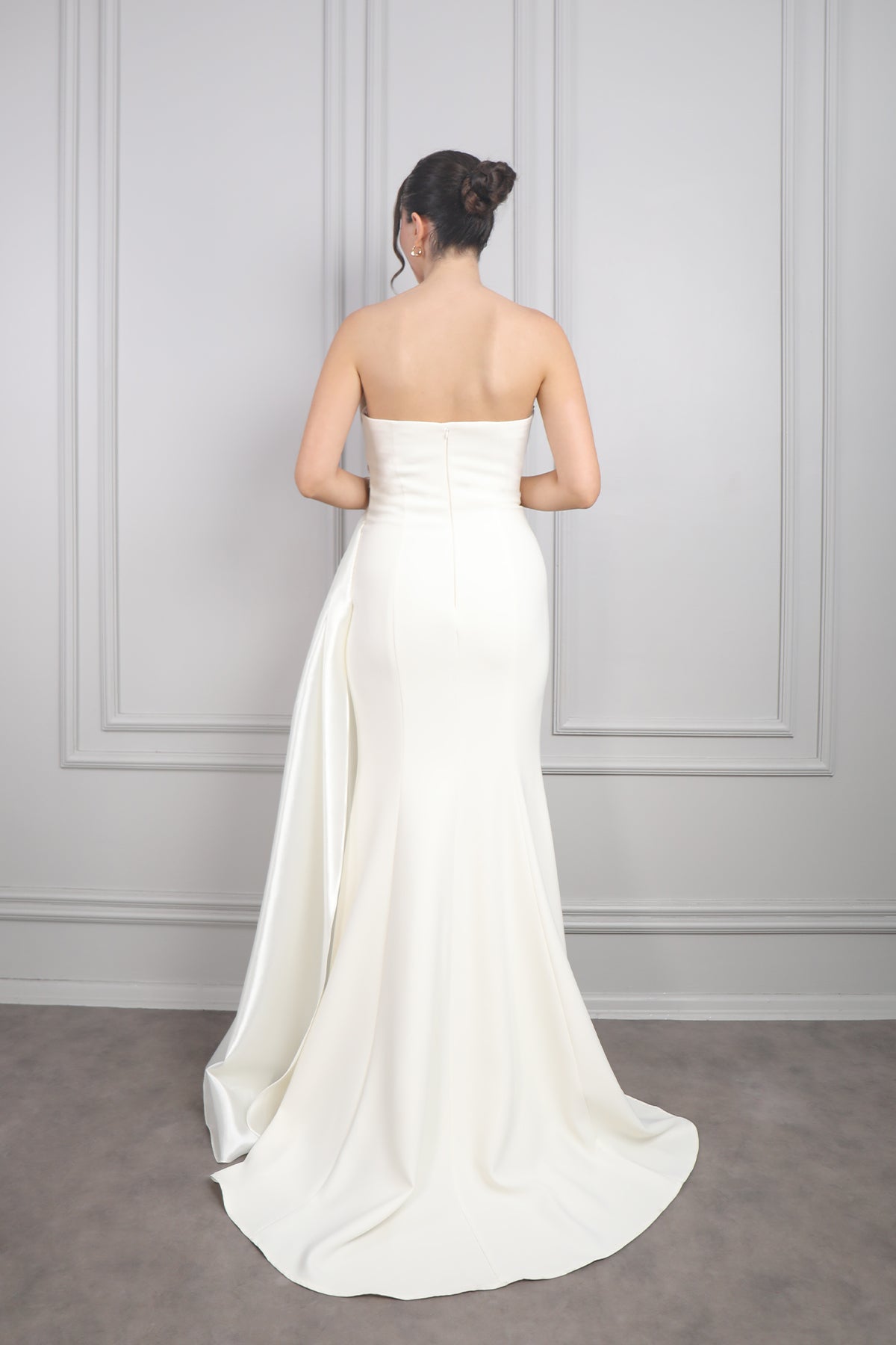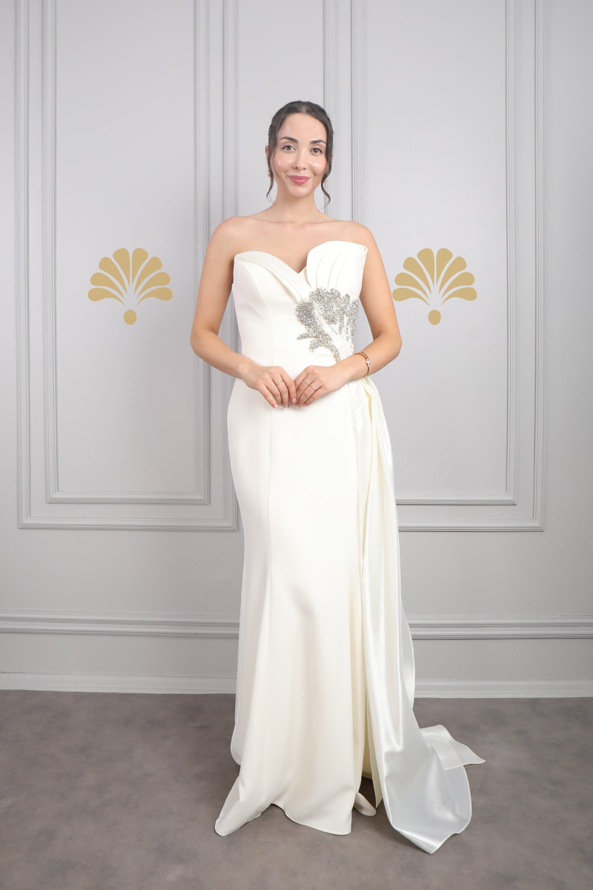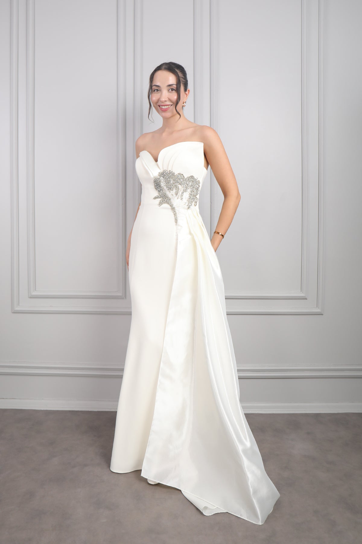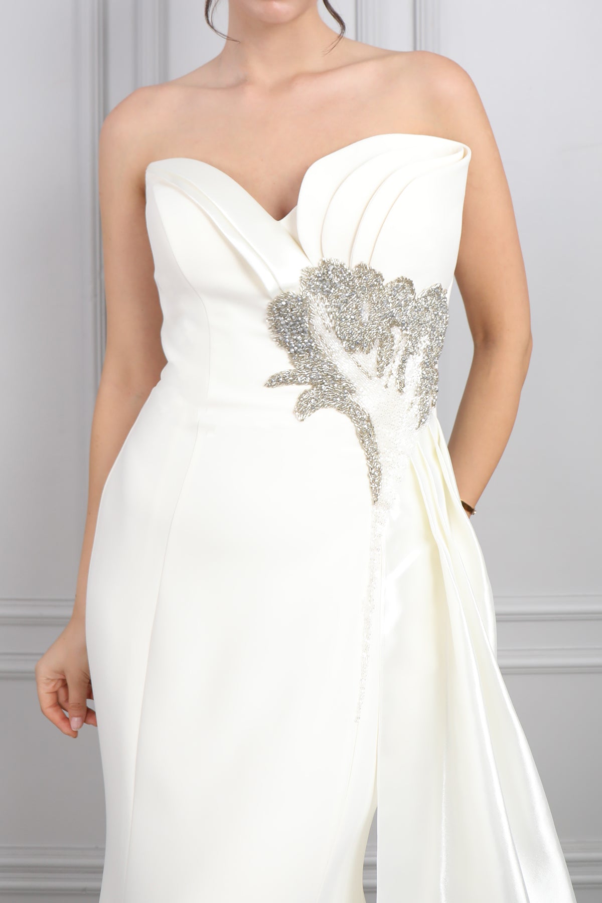Drapeli Boncuk İşlemeli Kuyruklu Büyük Beden Abiye Kemik