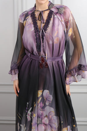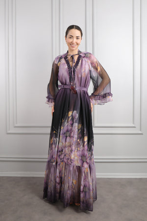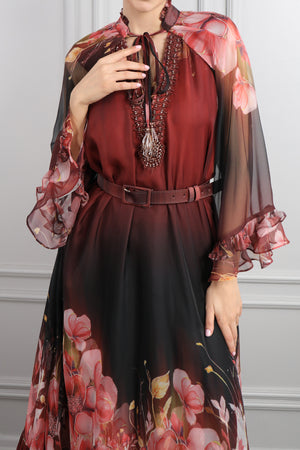 Zamansız zarafetin modern bir yorumu olan kare yaka önü fiyonk detaylı kelebek desenli şifon elbise, özel davetlerinizde dikkat çekici bir stil sunuyor. Hafif ve dökümlü yapısıyla gün boyu konfor sağlarken, uçuş uçuş şifon kumaşı ve pastel tonlardaki kelebek işlemeleri ile masalsı bir görünüm vadediyor. Göğüs kısmındaki zarif fiyonk detayları elbiseye feminen bir hava katarken, kare yaka kesimi şıklıkla modernizmi buluşturuyor. Volanlı, transparan balon kolları nostaljik romantizmin simgesi olurken, bele oturan form zarif siluetinizi ön plana çıkarıyor. Söz, nişan, mezuniyet veya yaz davetleri için ideal olan bu elbise, kelebek desenleriyle doğadan ilham alan zarif bir duruş sergiliyor. Hafif yapısı sayesinde yaz aylarının favorisi olmaya aday bu model, sade ama etkileyici görünüm arayanların gözdesi olacak.