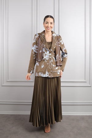 Kare Yaka Önü Fiyonk Detaylı Kelebek Desenli Şifon Elbise Ekru