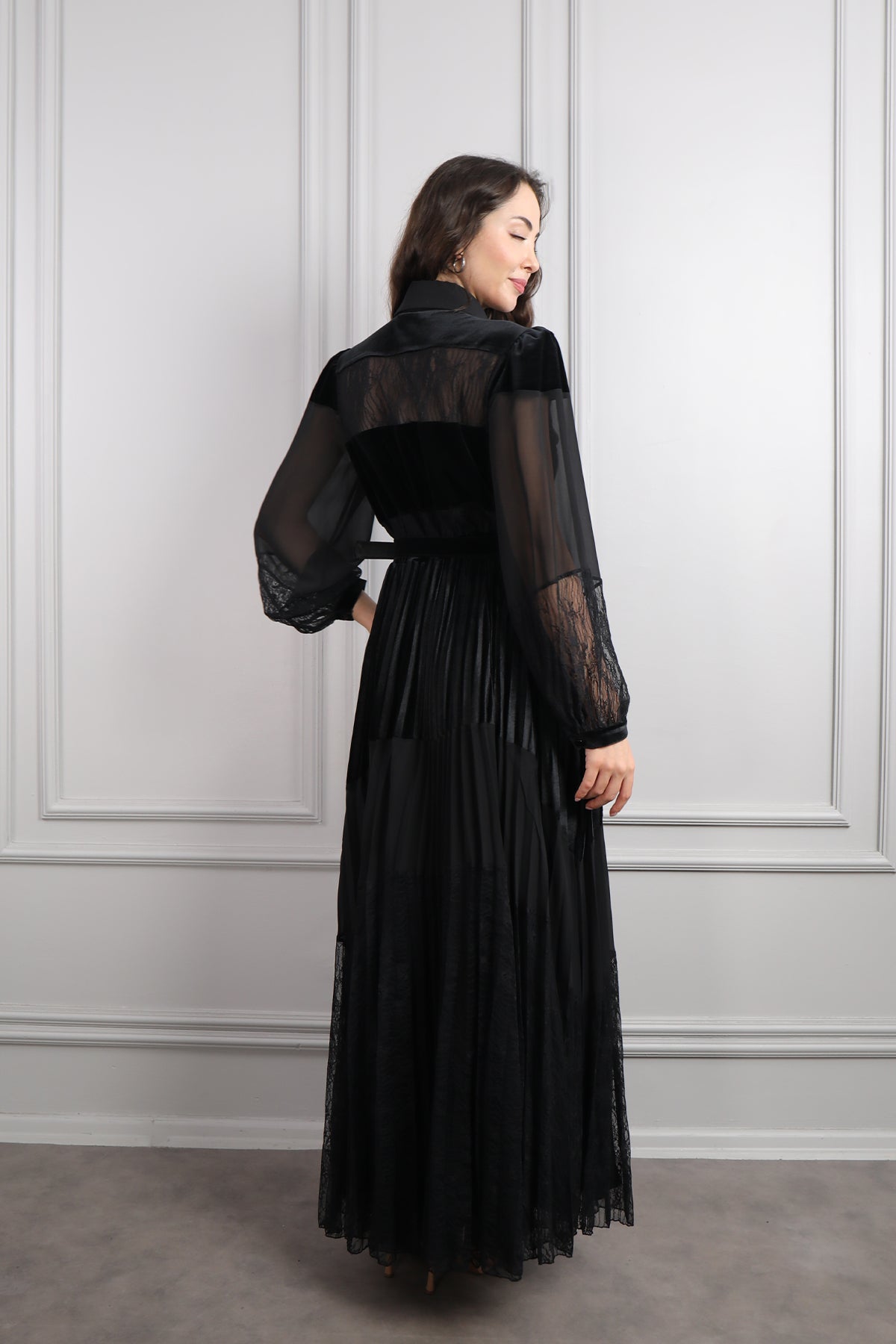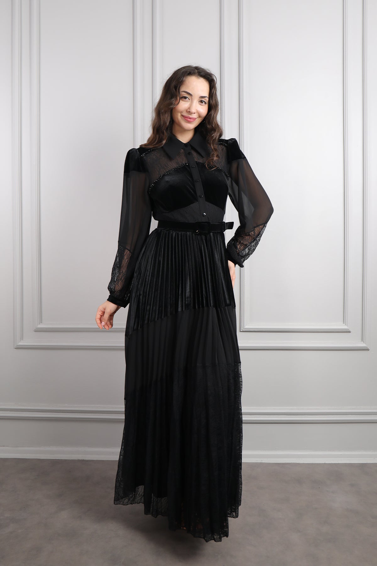 Gömlek Yaka Beli Kemerli Kadife Detaylı Büyük Beden Elbise Siyah Özellikleri