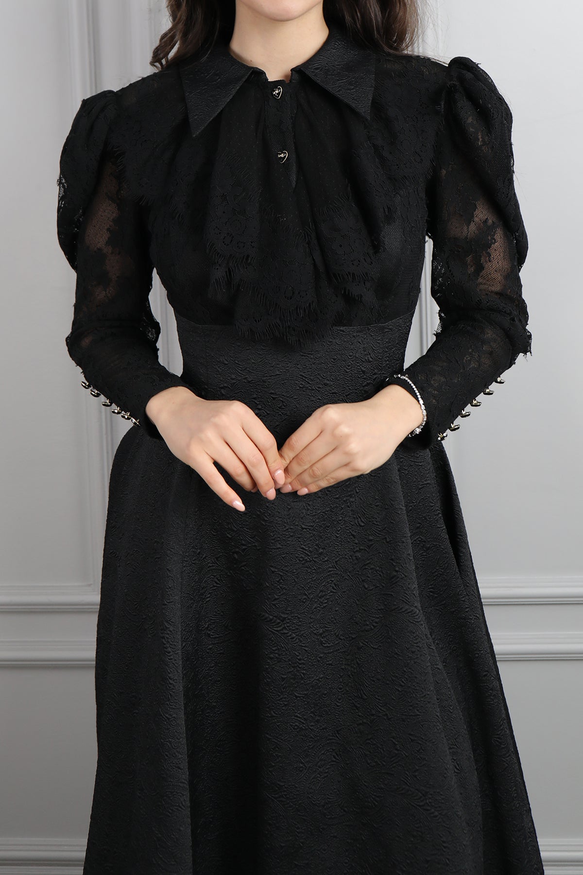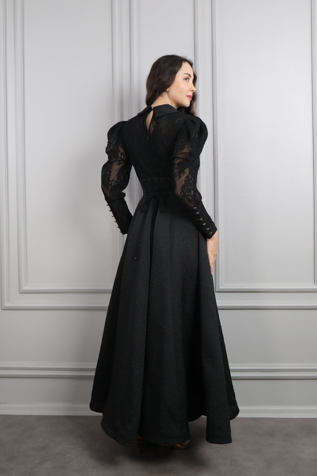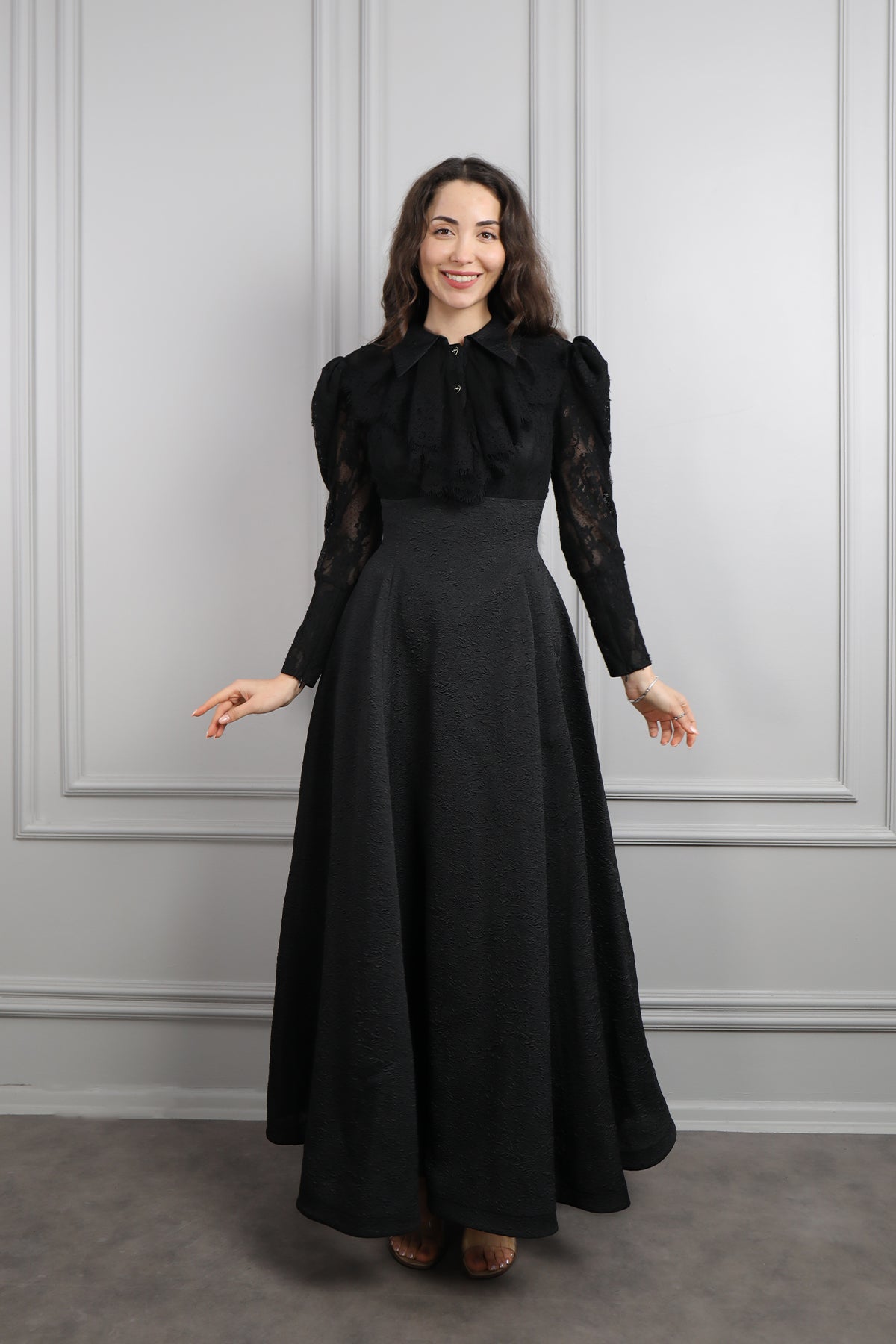 Gömlek Yaka Fırfır Detaylı Dantelli Elbise Siyah Özellikleri