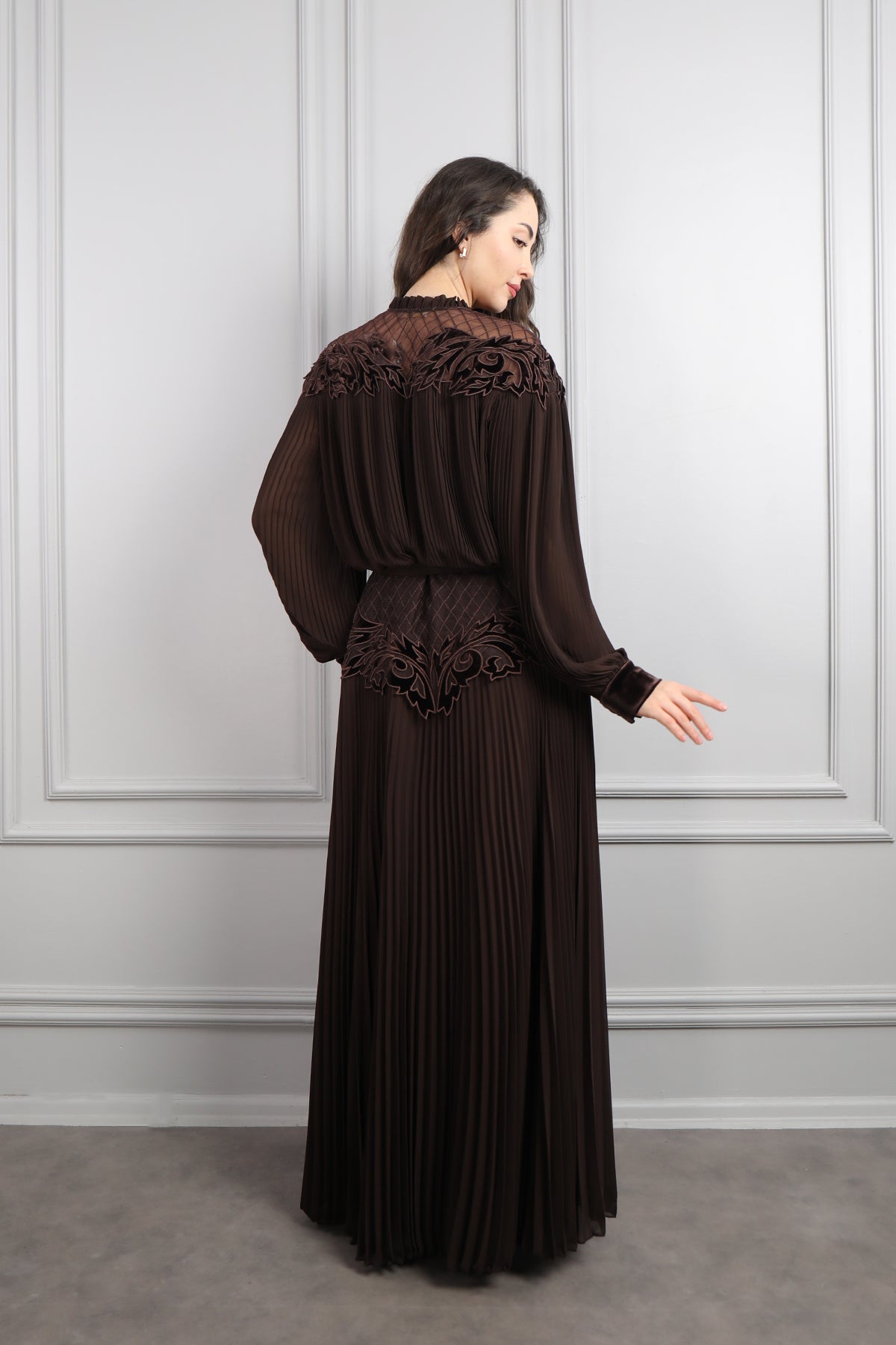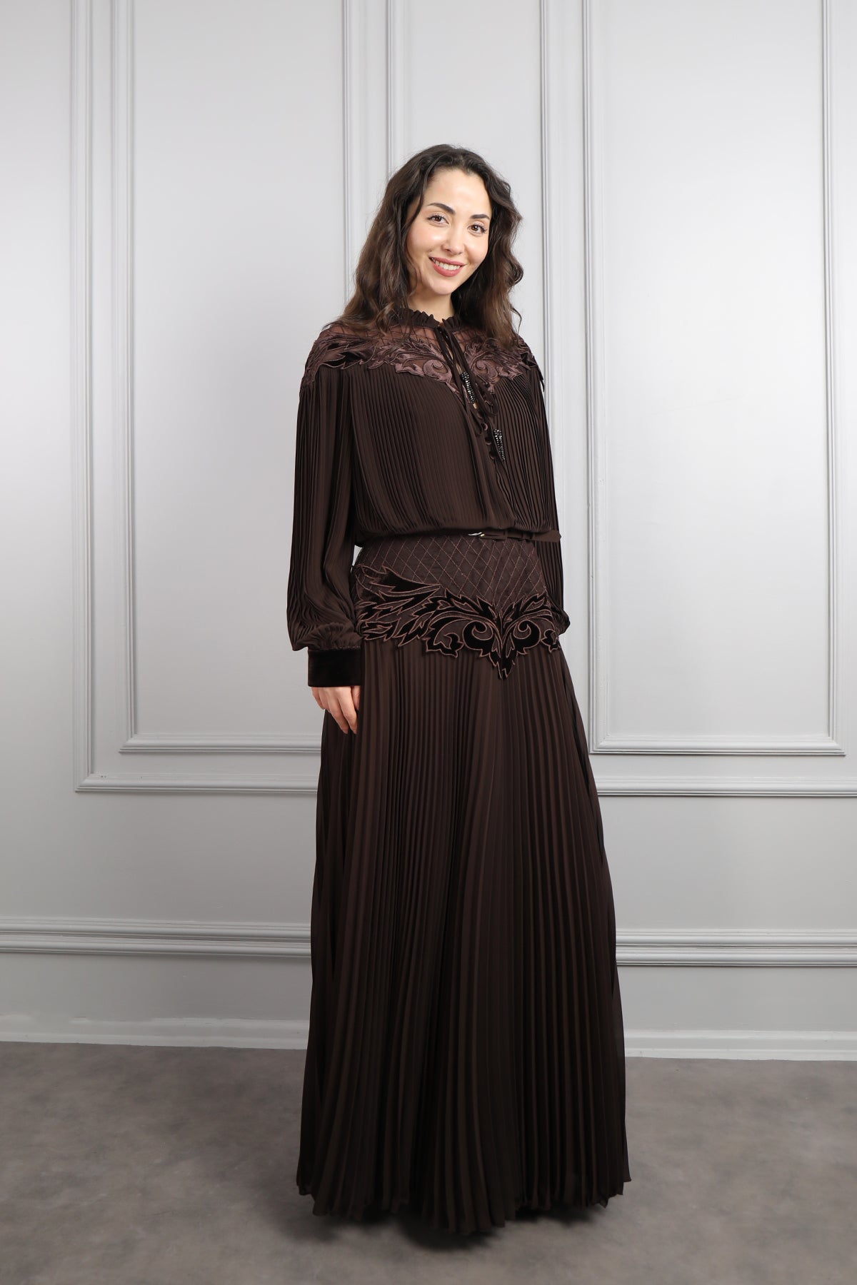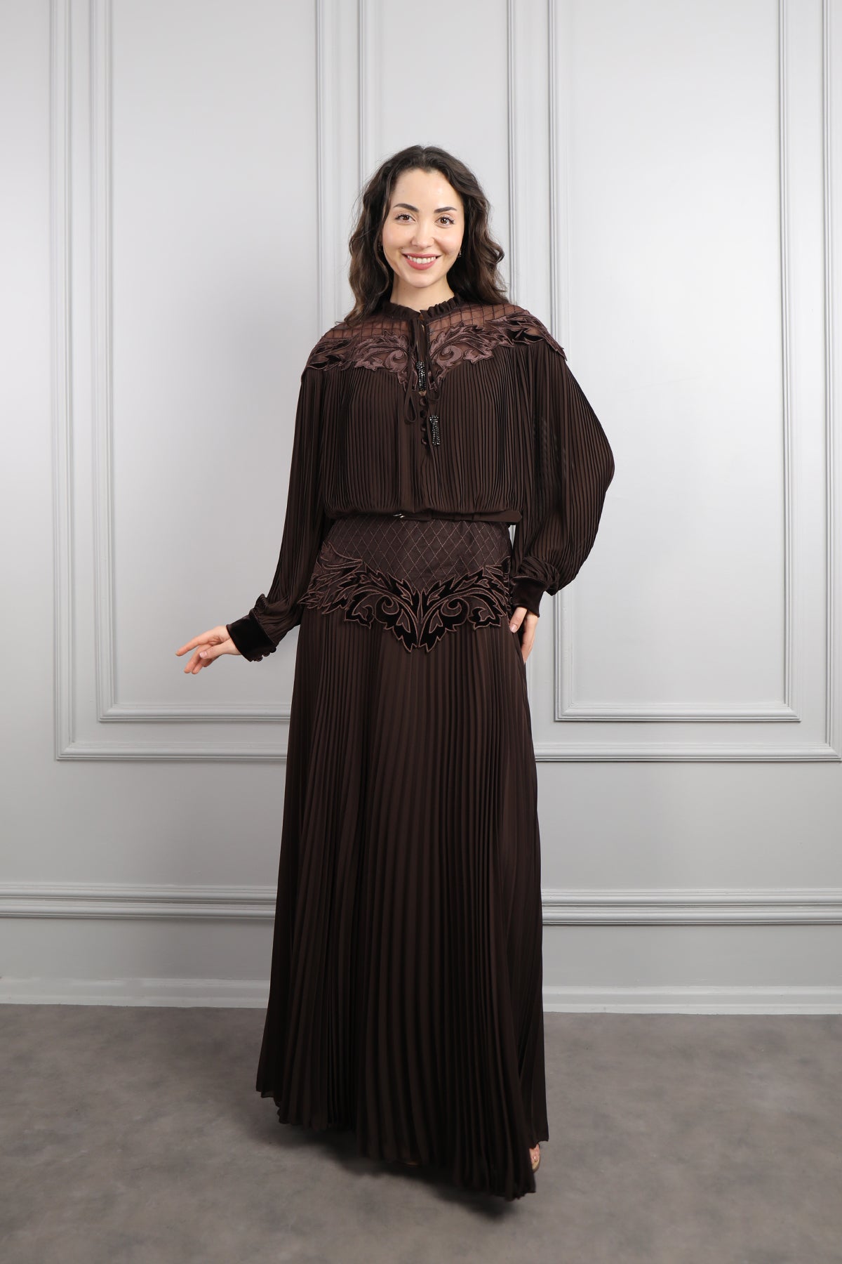 Gömlek Yaka Kadife Detaylı Desenli Büyük Beden Elbise Kahverengi Özellikleri