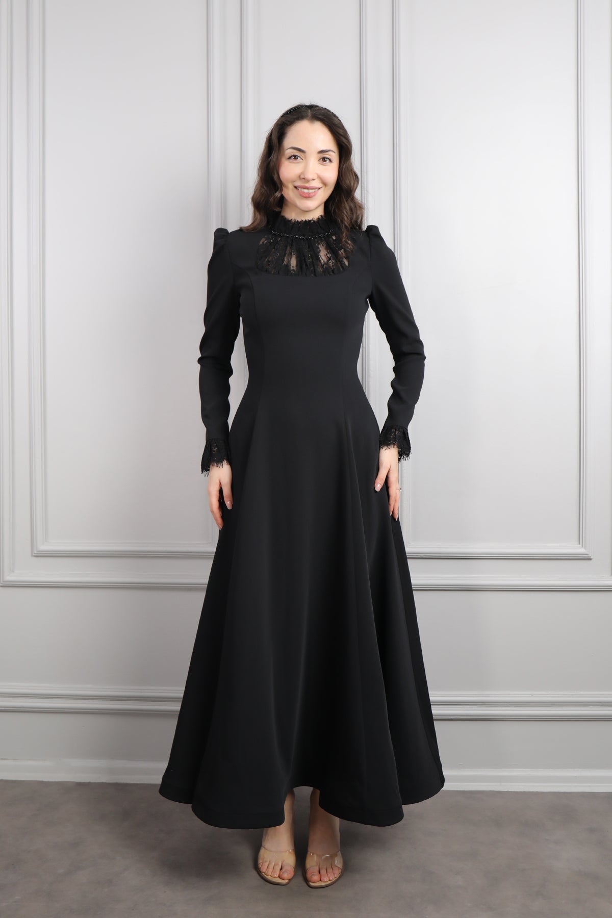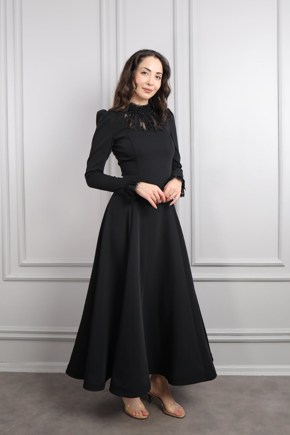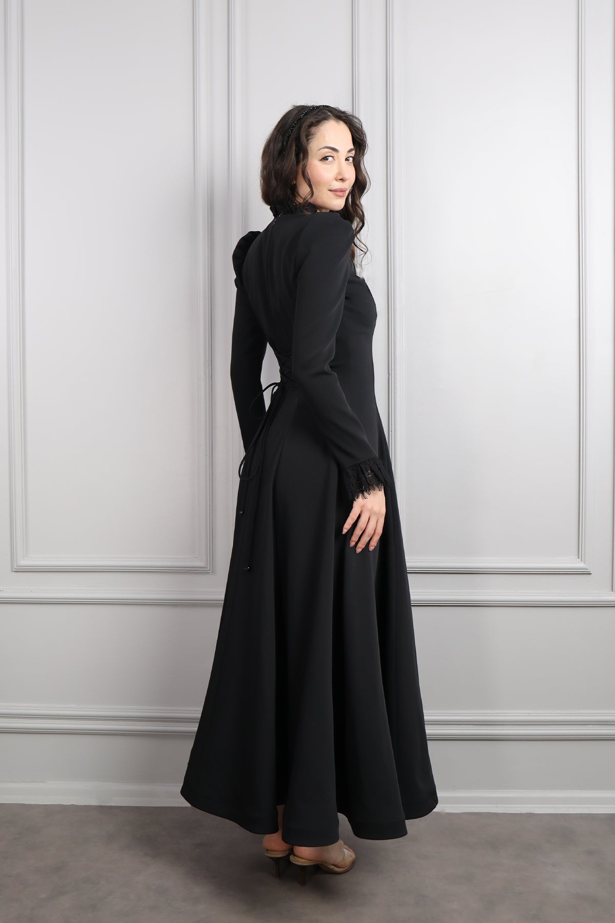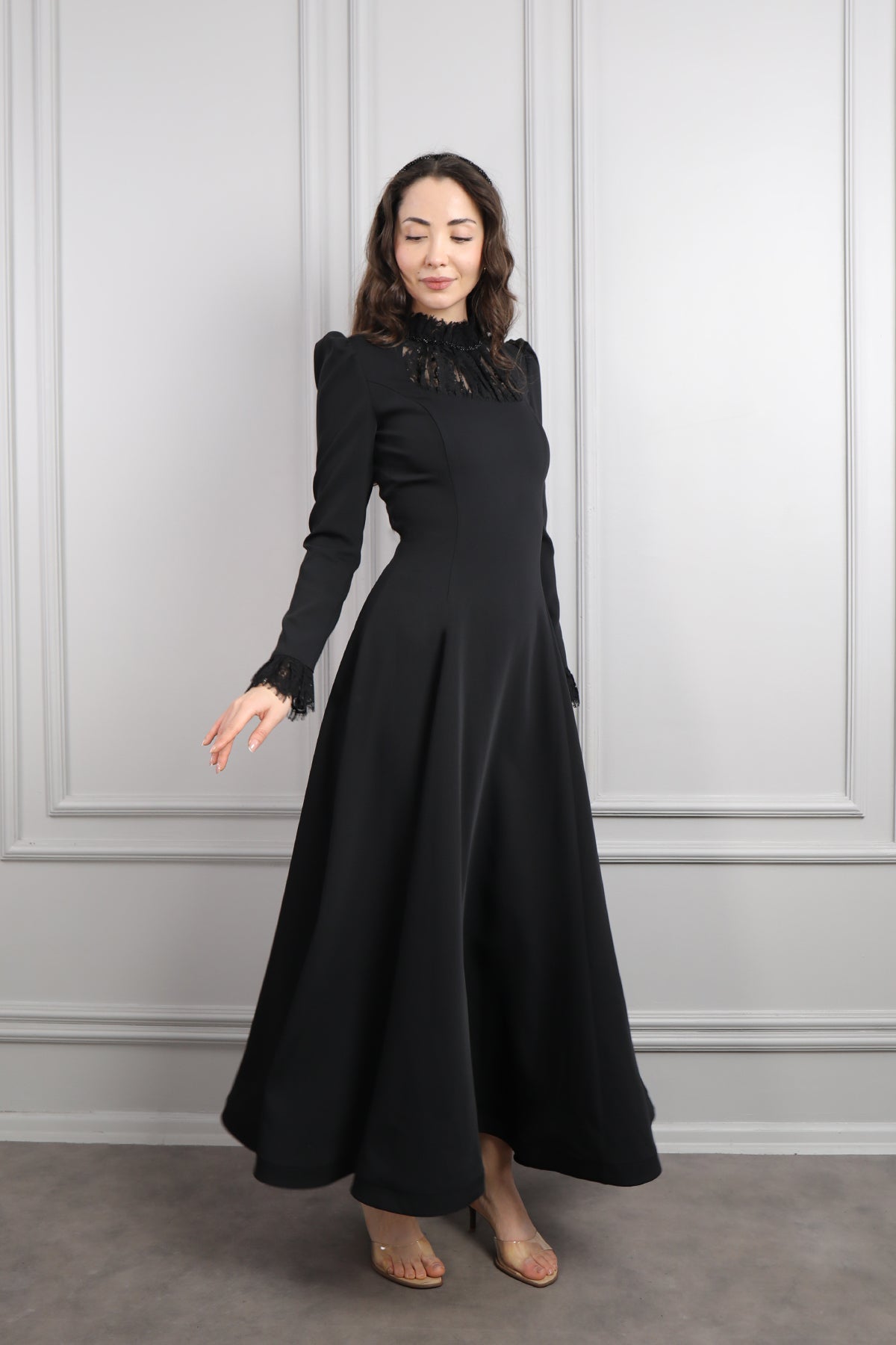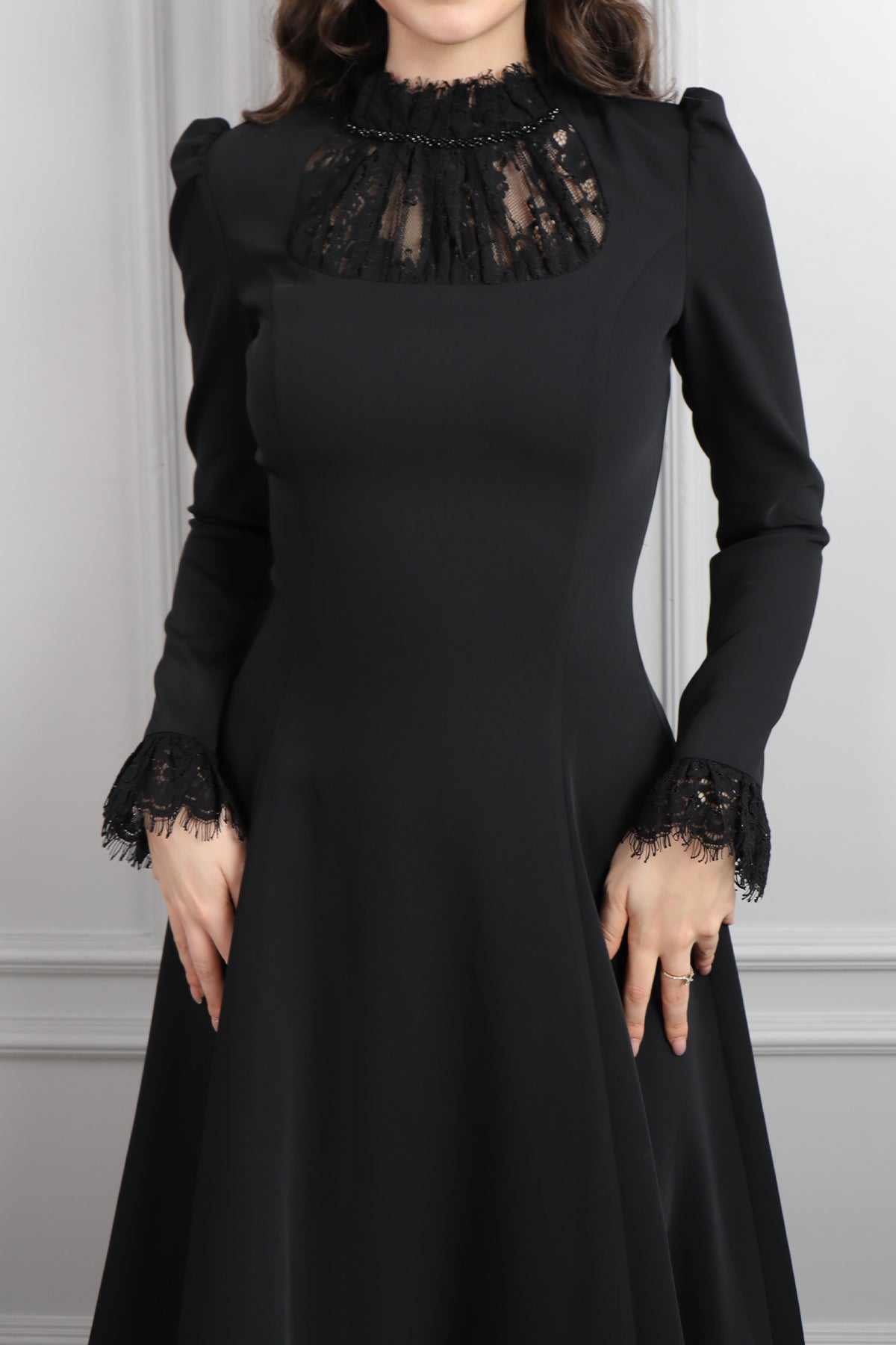 Hakim Yaka Dantelli Saç Aksesuar Detay Elbise Siyah Özellikleri