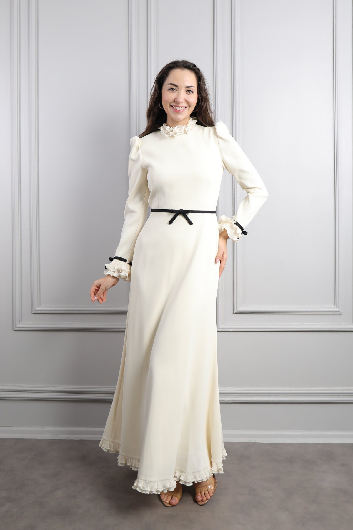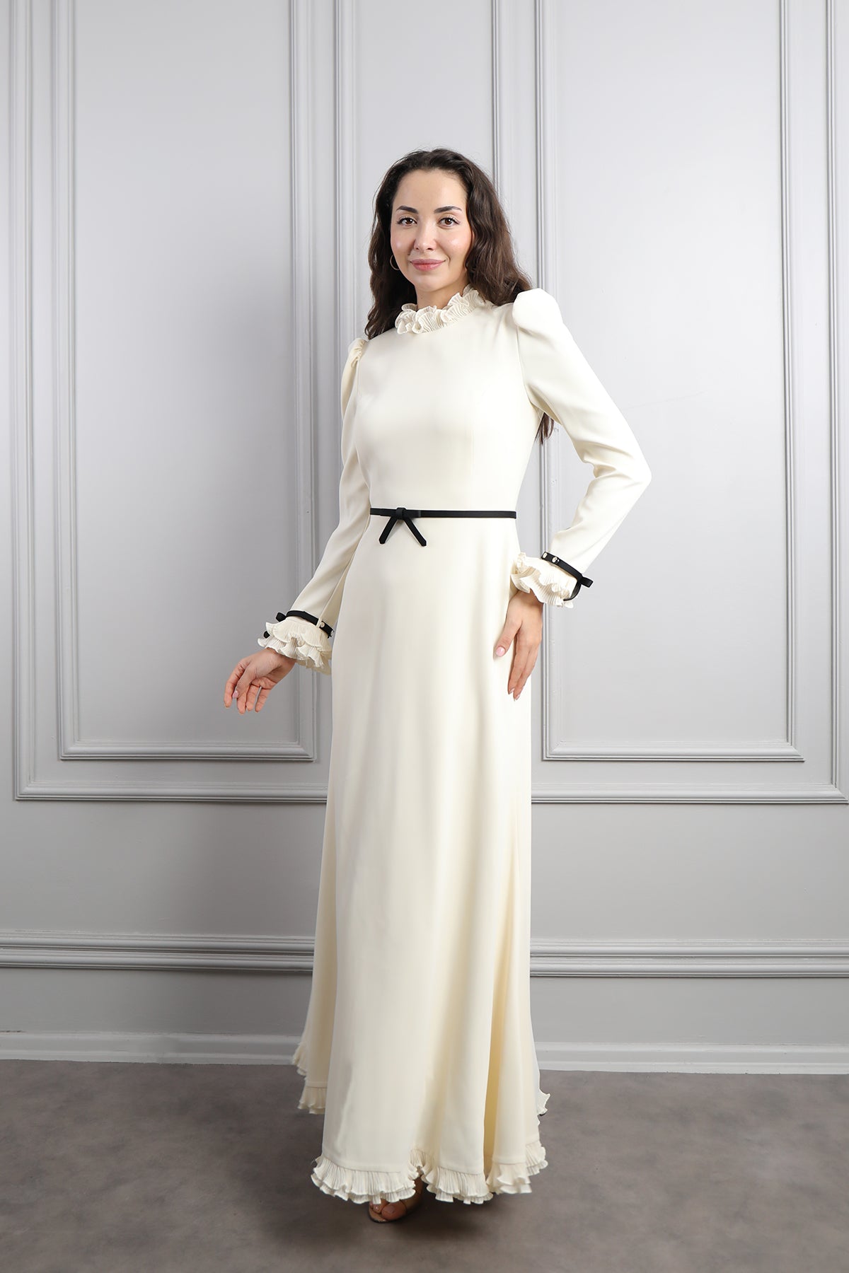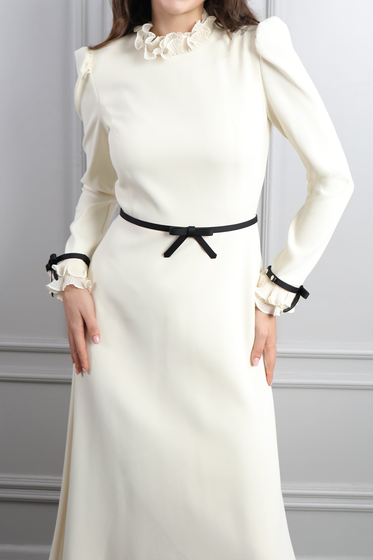 Hakim Yaka Kemeri Fiyonk Detaylı Elbise Ekru Özellikleri