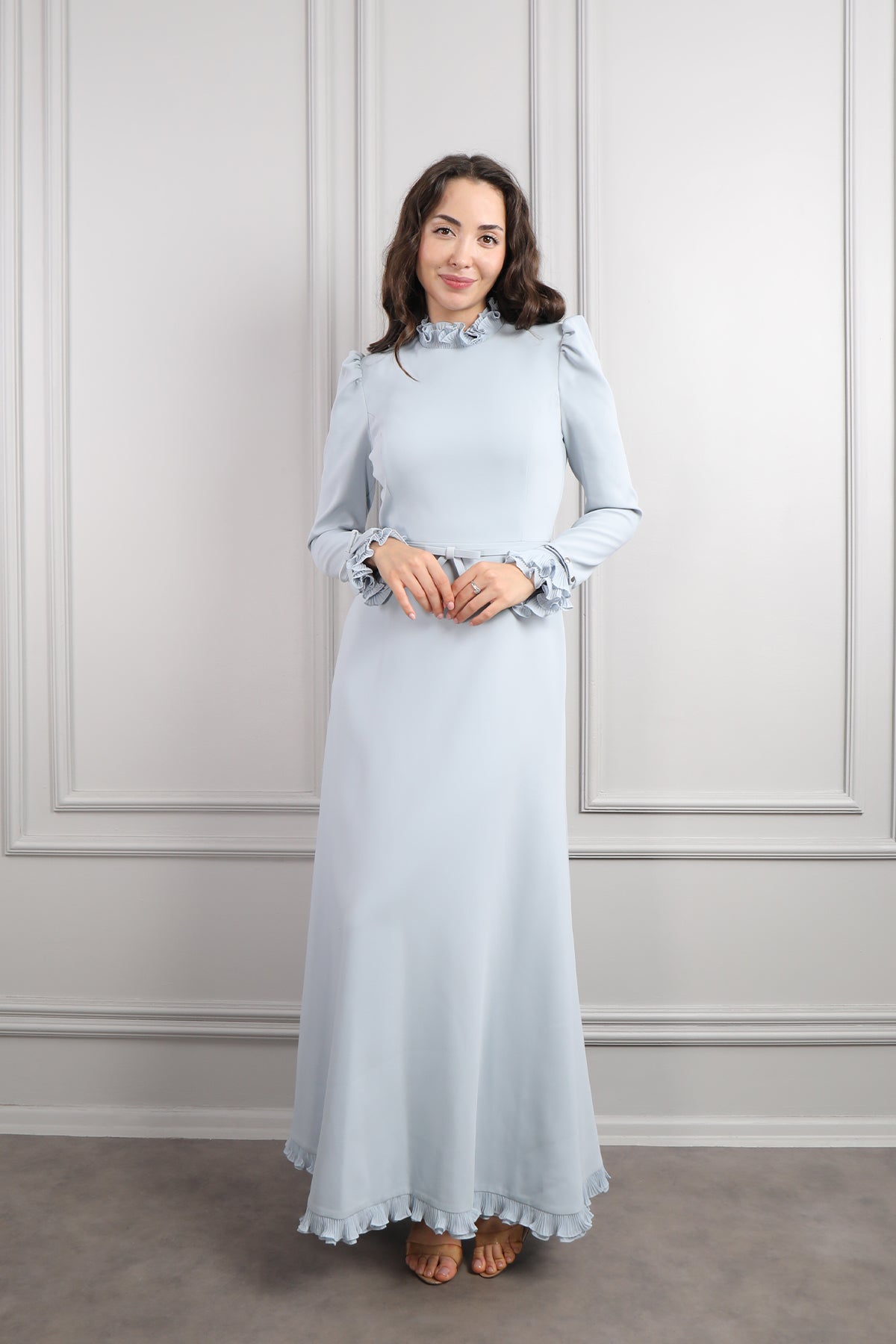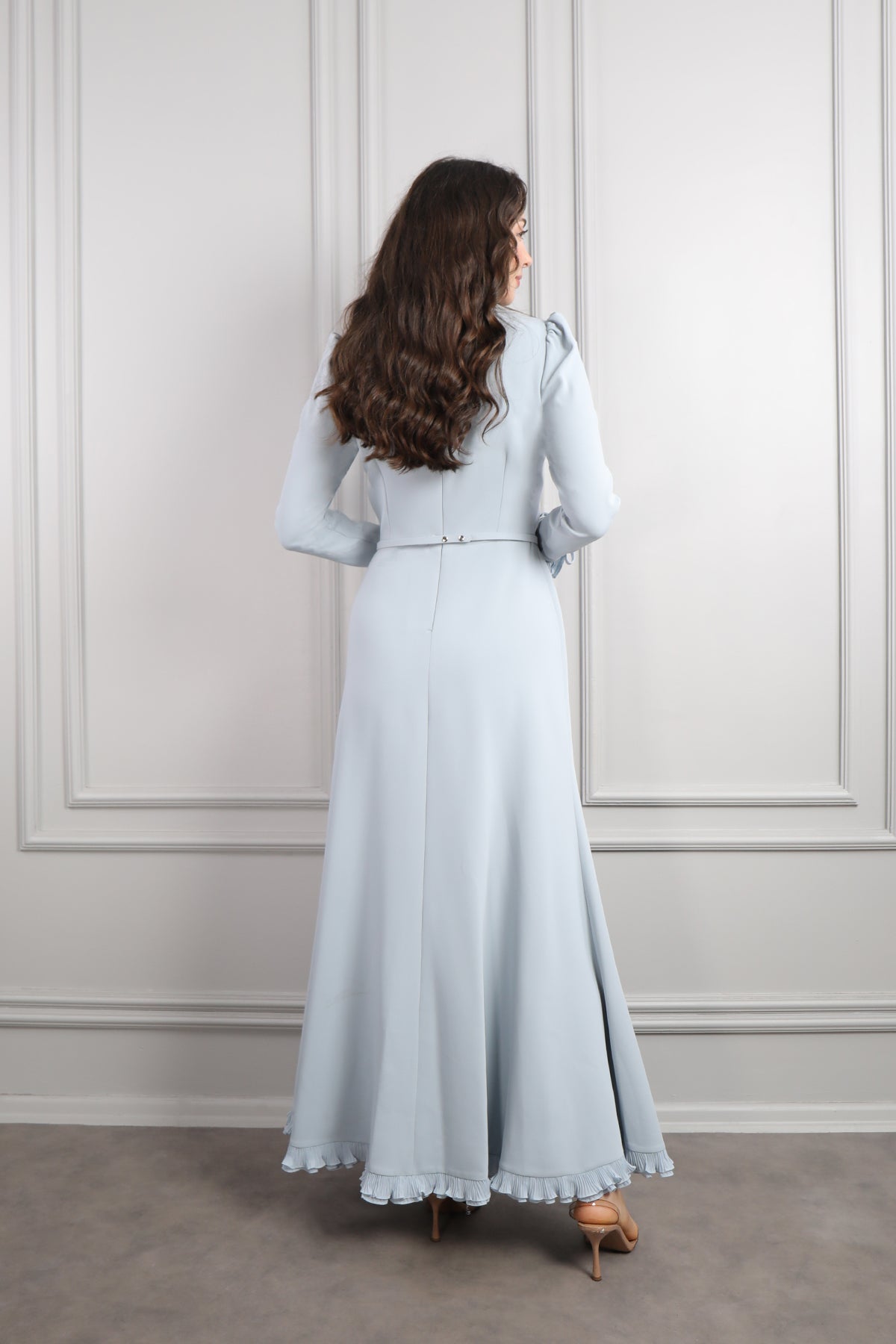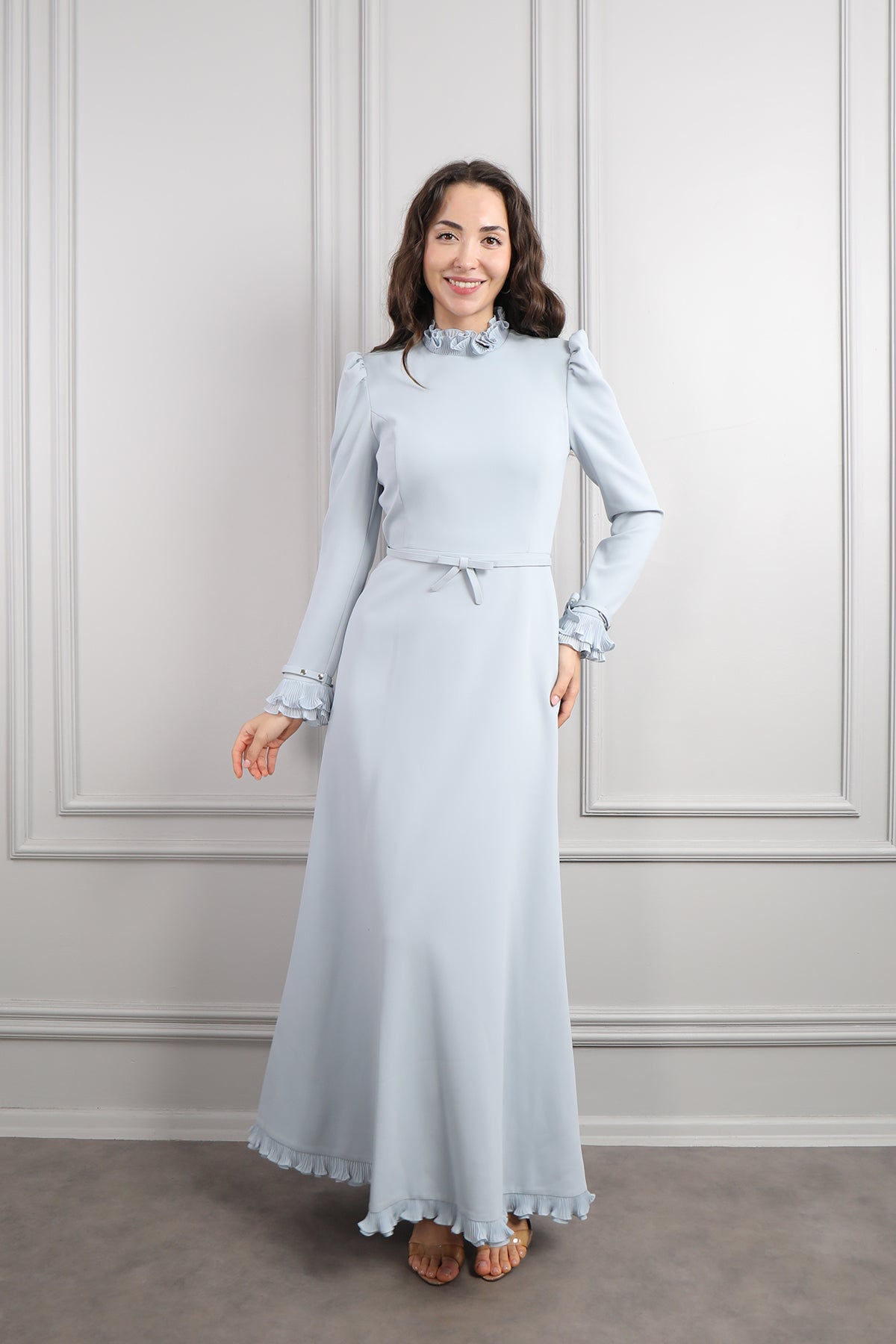 Hakim Yaka Kemeri Fiyonk Detaylı Elbise Mavi Özellikleri