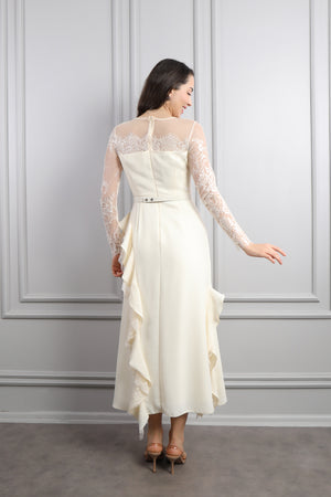 İnce Askılı Derin Dekolteli Boncuk İşlemeli Tasarım Abiye Krem Özellikleri