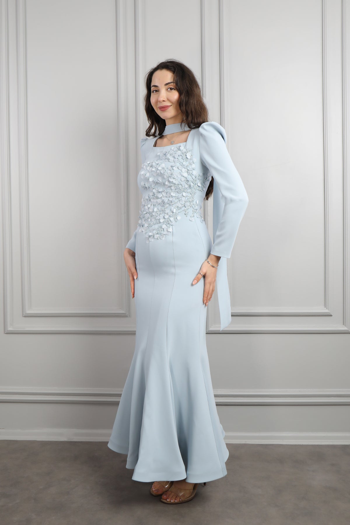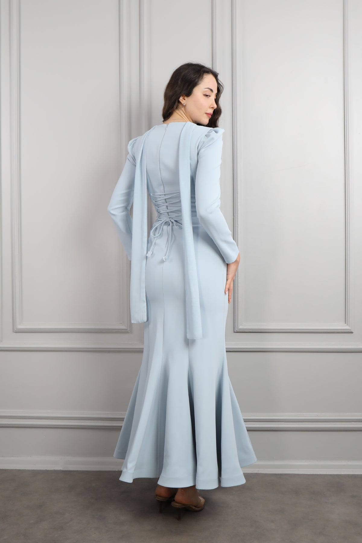 Modelin üzerindeki elbise 36 bedendir. Ürün tam kalıptır, kendi bedeninizi almanızı öneririz.