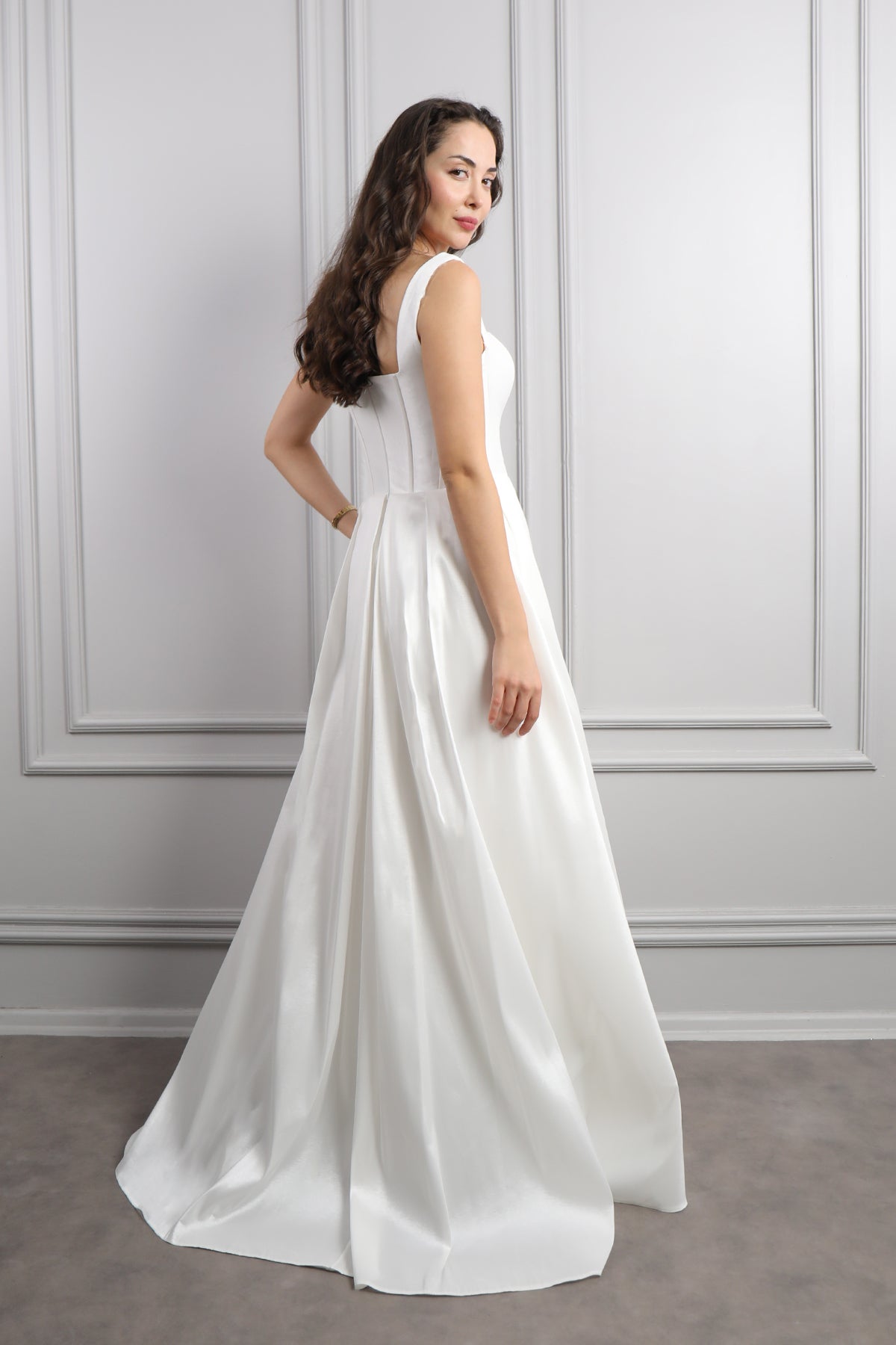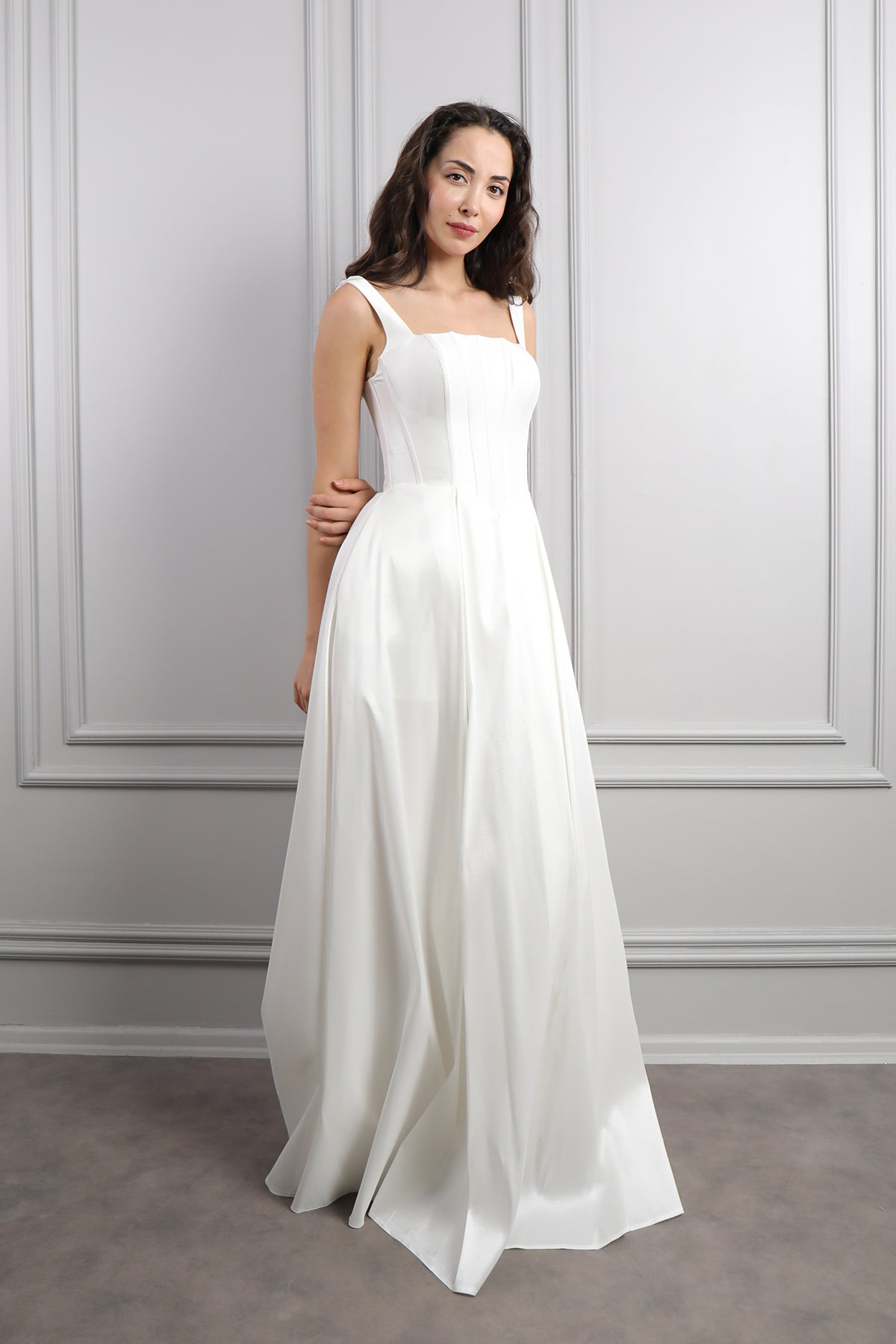 Kare Yaka Korse Görünümlü Yırtmaçlı Abiye