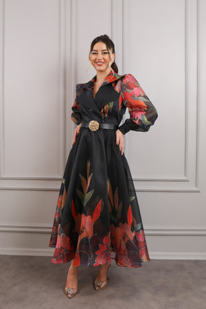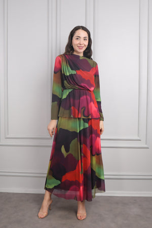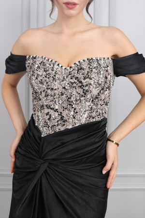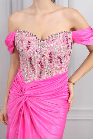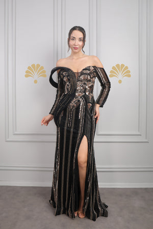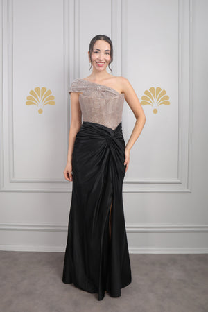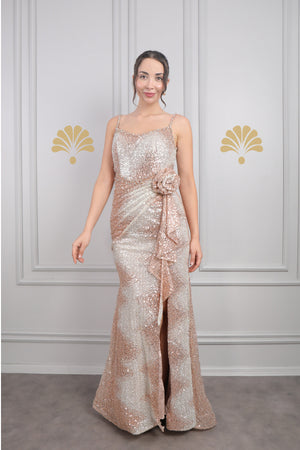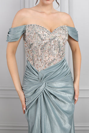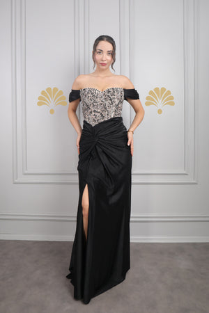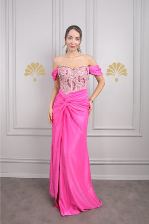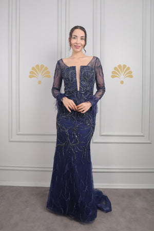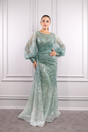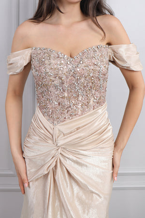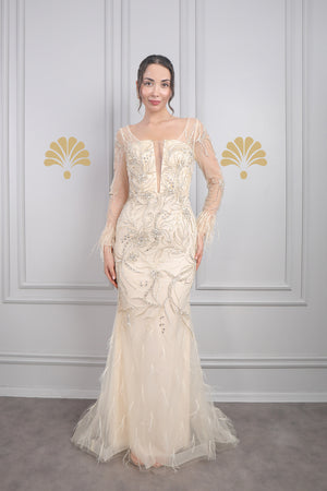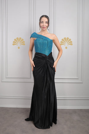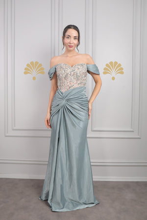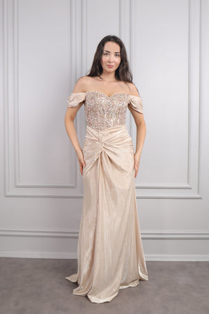 Modelin üzerindeki abiye 38 bedendir. Tam kalıptır, kendi bedeninizi almanızı öneririz.