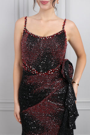 Halter Yaka Taş İşlemeli Kısa Tasarım Abiye Kırmızı