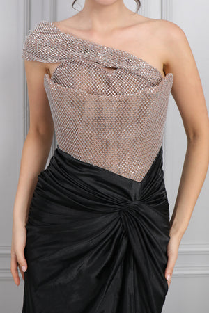 Halter yaka abiyemizin sırt kısmına doğru detay verilirken taşlar işlenerek göz alıcı görünüm sağlanmıştır. Bel kısmında transparan korse görünümü verilirken belinden aşağı kabararak inerken kısa boy olarak oluşturulmuştur. Taş, boncuk ve pullarla süslenerek göz alıcı tasarım kazandırılan tasarım abiyemizi özel gün veya davetlerinizde tercih etmeniz sizler için ideal bir seçim olacaktır.