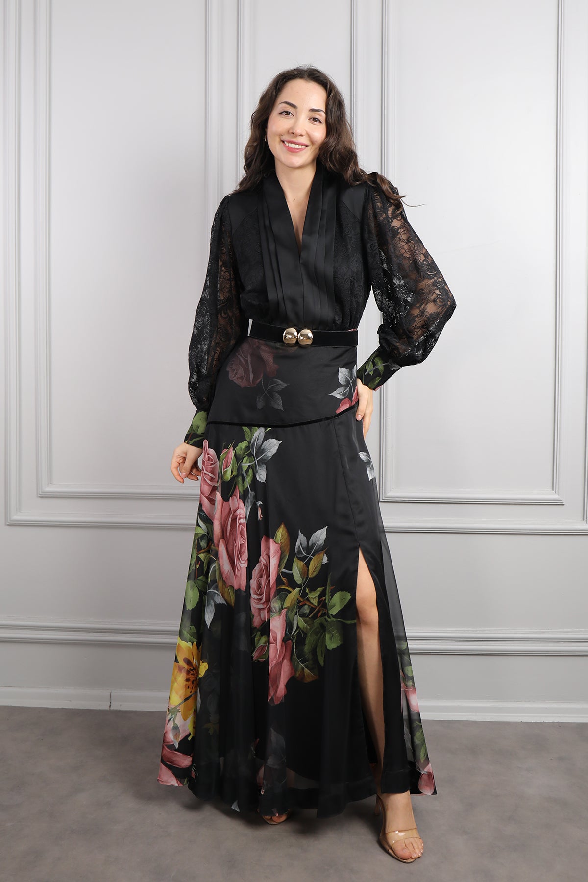 Modelin üzerindeki elbise 42 bedendir. Ürün tam kalıptır, kendi bedeninizi almanızı öneririz.