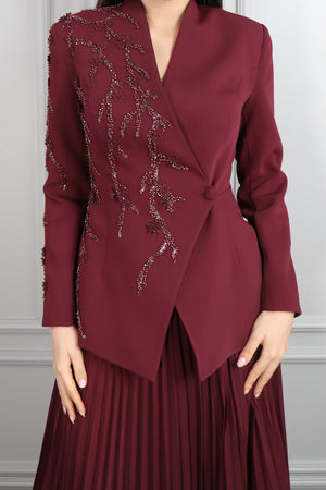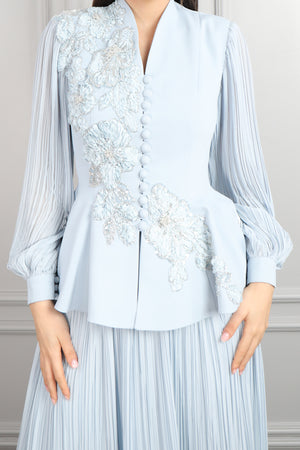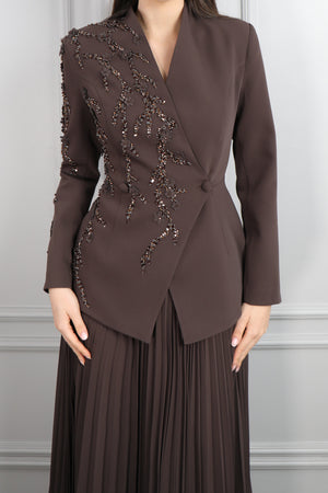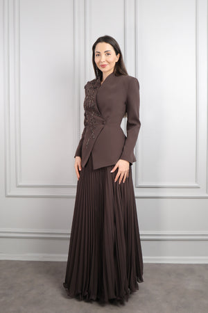 Zarafeti ve modern şıklığı bir arada sunan Önü Düğmeli Yandan Bağlamalı Çiçek Desenli Kadife Etek Takım, kadifenin asil dokusunu romantik çiçek desenleriyle buluşturuyor. Ön kısmındaki düğme detayları ve yandan bağlamalı tasarımı sayesinde feminen bir siluet oluştururken, siyah rengin zamansız şıklığıyla her ortamda dikkat çekiyor. Günlük kombinlerden özel davetlere kadar geniş bir kullanım alanı sunan bu kadife etek takım, hem konforlu hem de stil sahibi bir görünüm arayanlar için ideal bir tercih.