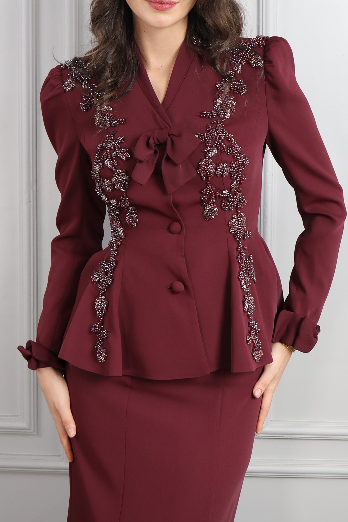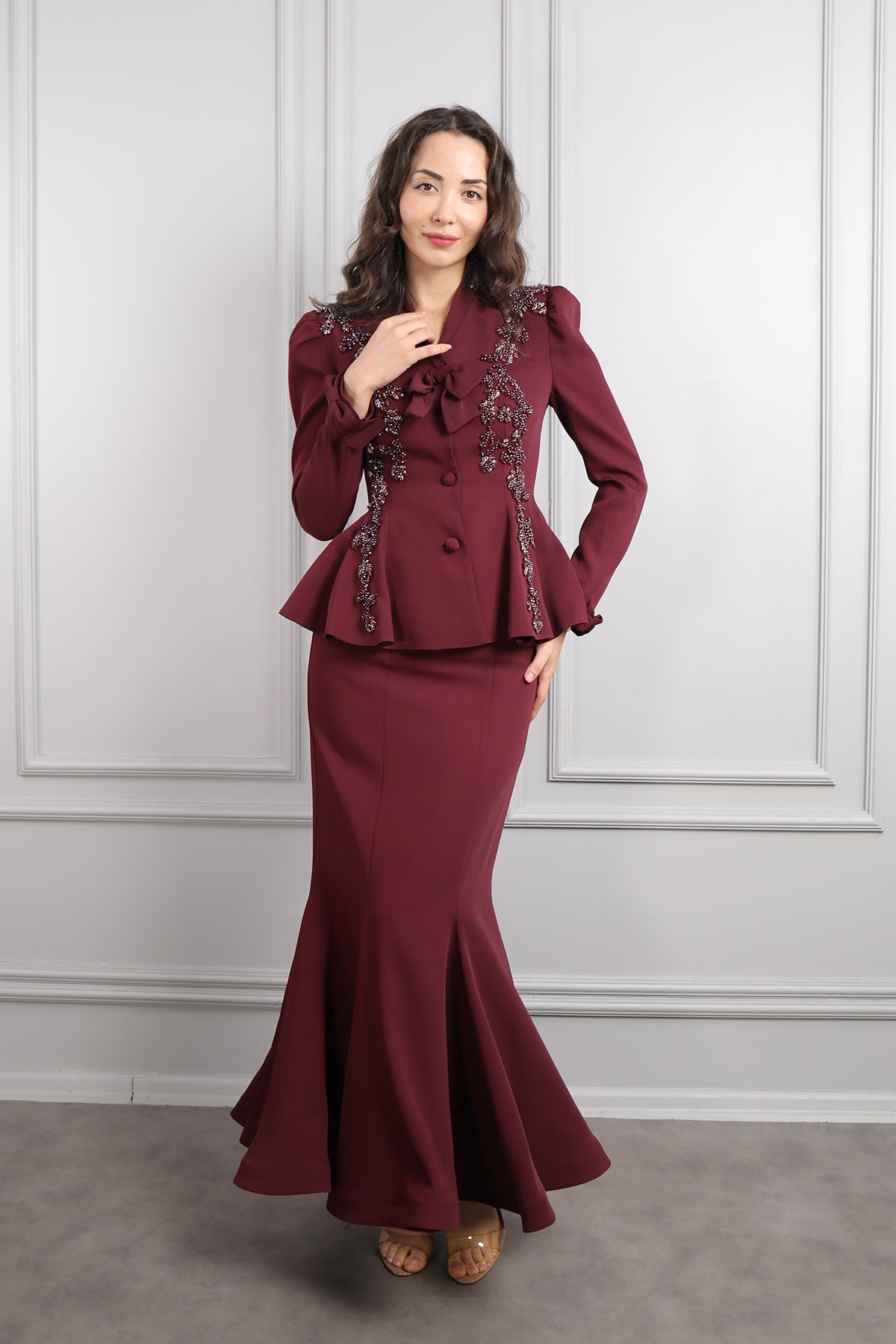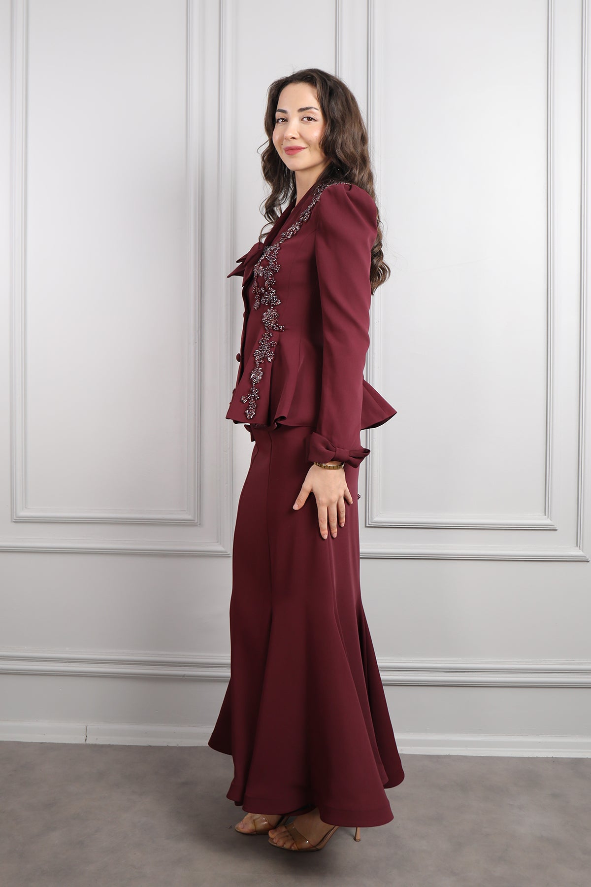Önü Fiyonk Detaylı Boncuk İşlemeli Etek Takım Özellikleri