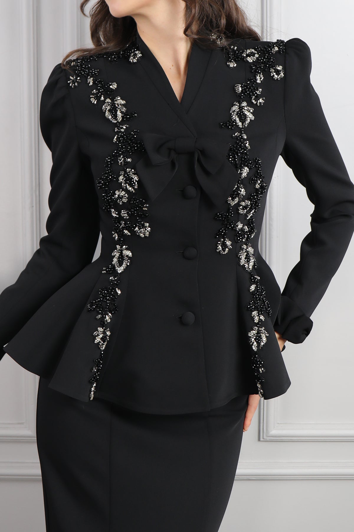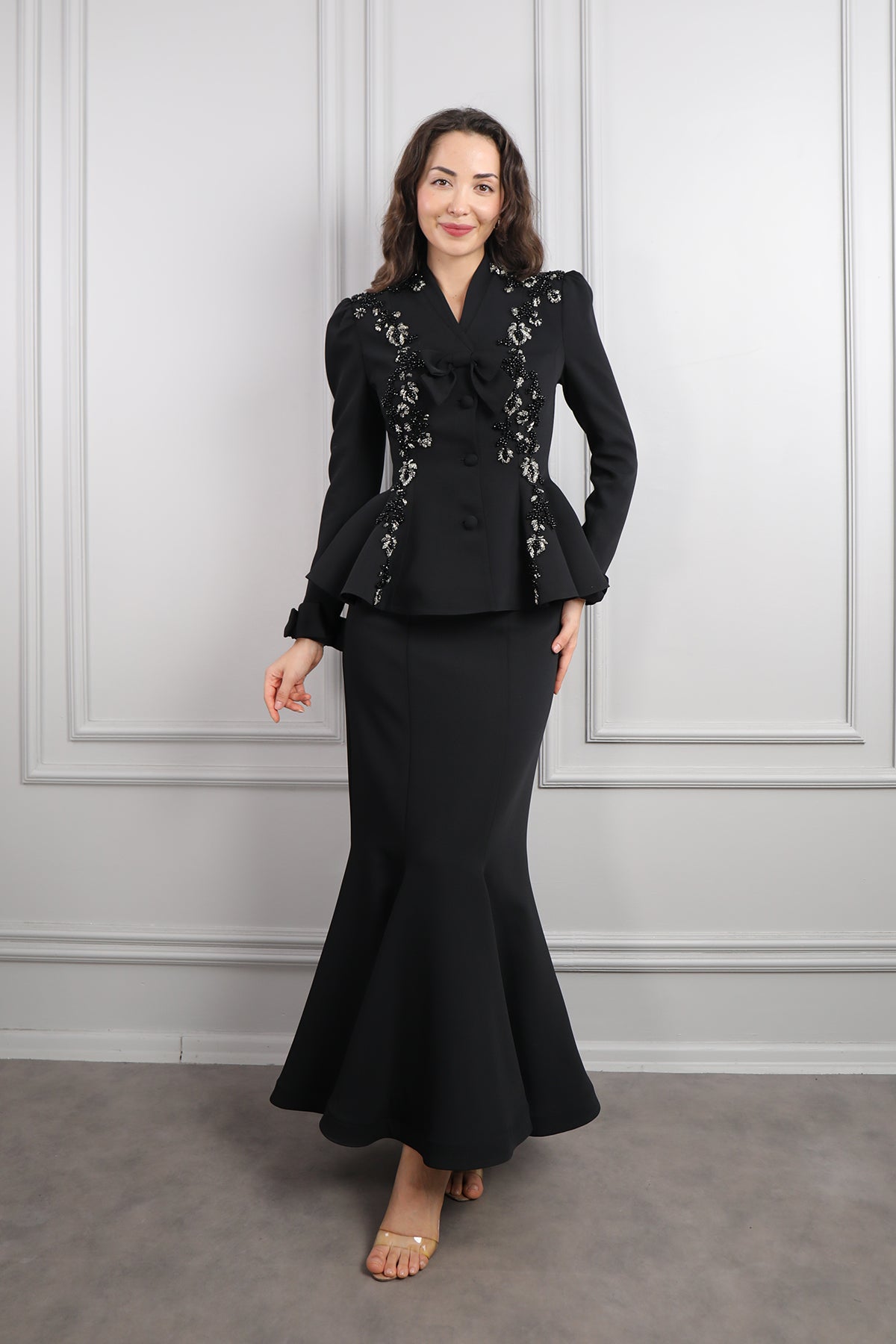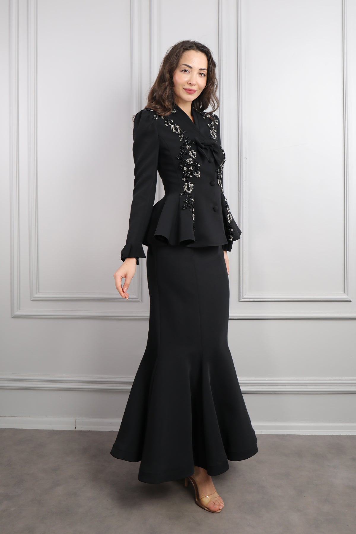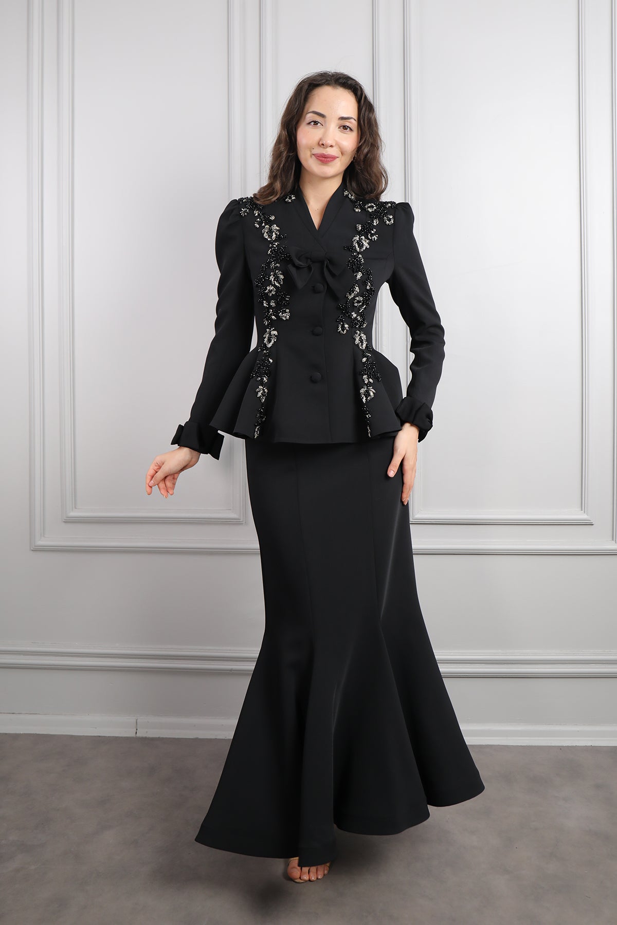 Önü Fiyonk Detaylı Boncuk İşlemeli Etek Takım