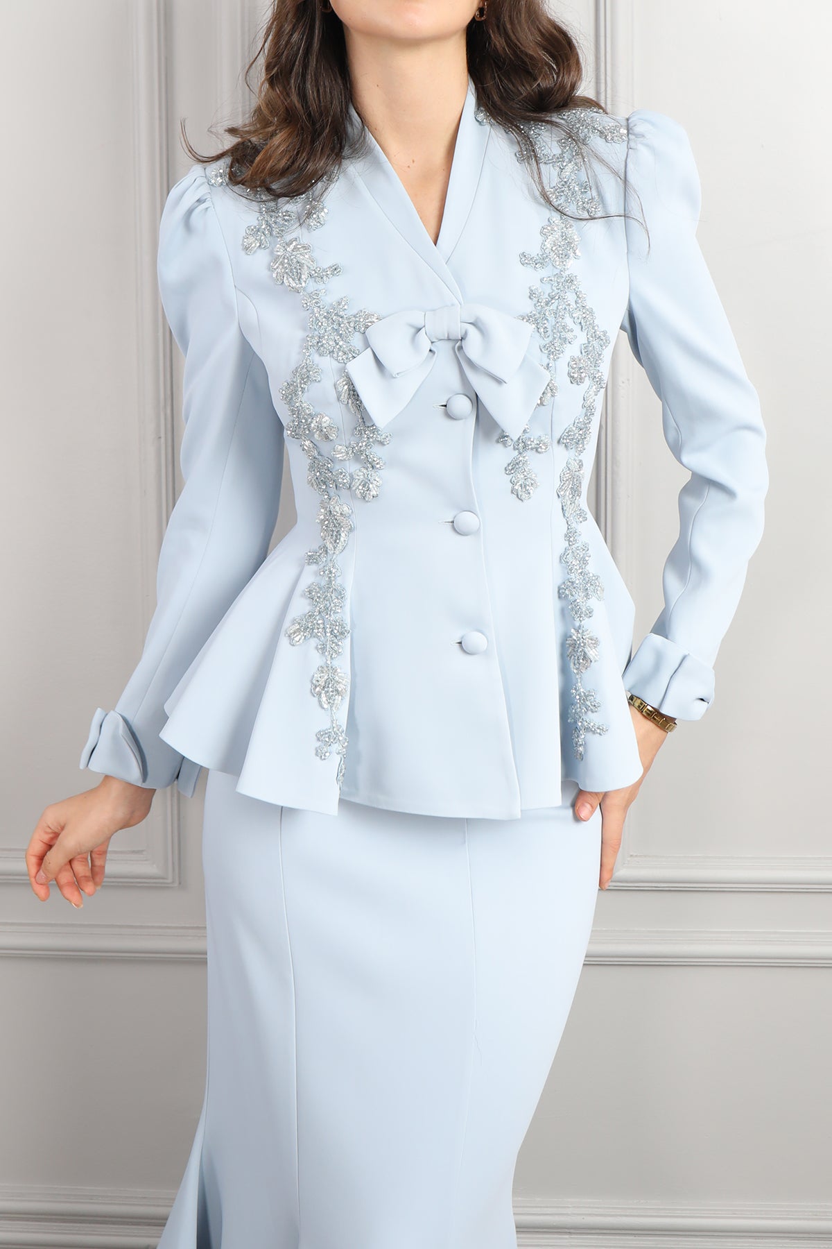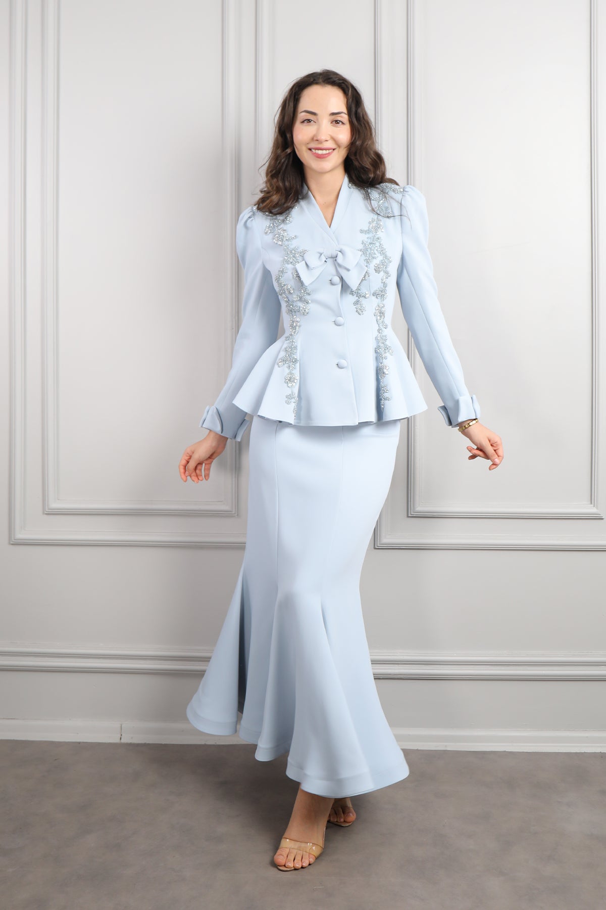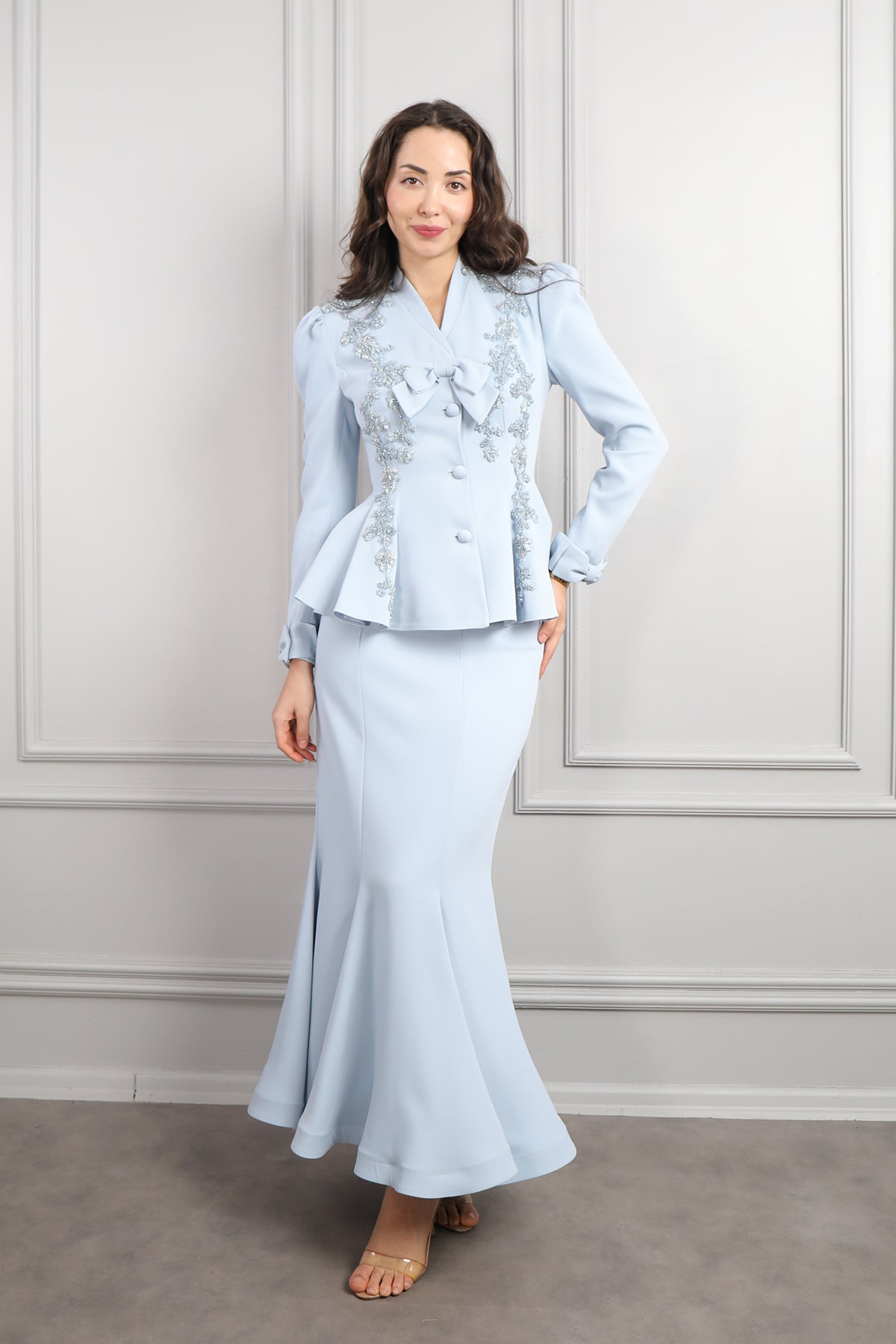 önü fiyonk detaylı boncuk işlemeli etek takım, Takımın ön kısmındaki zarif fiyonk detayı, feminen bir dokunuş katarken, boncuk işlemeler ise sofistike ve göz alıcı bir görünüm sunuyor. Üst ve eteğin uyumlu kesimi sayesinde, tek parça gibi şık bir stil elde edebilirsiniz. Yumuşak ve kaliteli kumaşı, gün boyu rahat bir kullanım sağlarken, modern kesimi ile vücut hatlarını zarifçe ortaya çıkarıyor. Bu takım, şıklığı ve konforu bir arada arayan kadınlar için özel davetler, nikahlar, mezuniyetler veya şık akşam yemekleri için tasarlanmış mükemmel bir kombin.