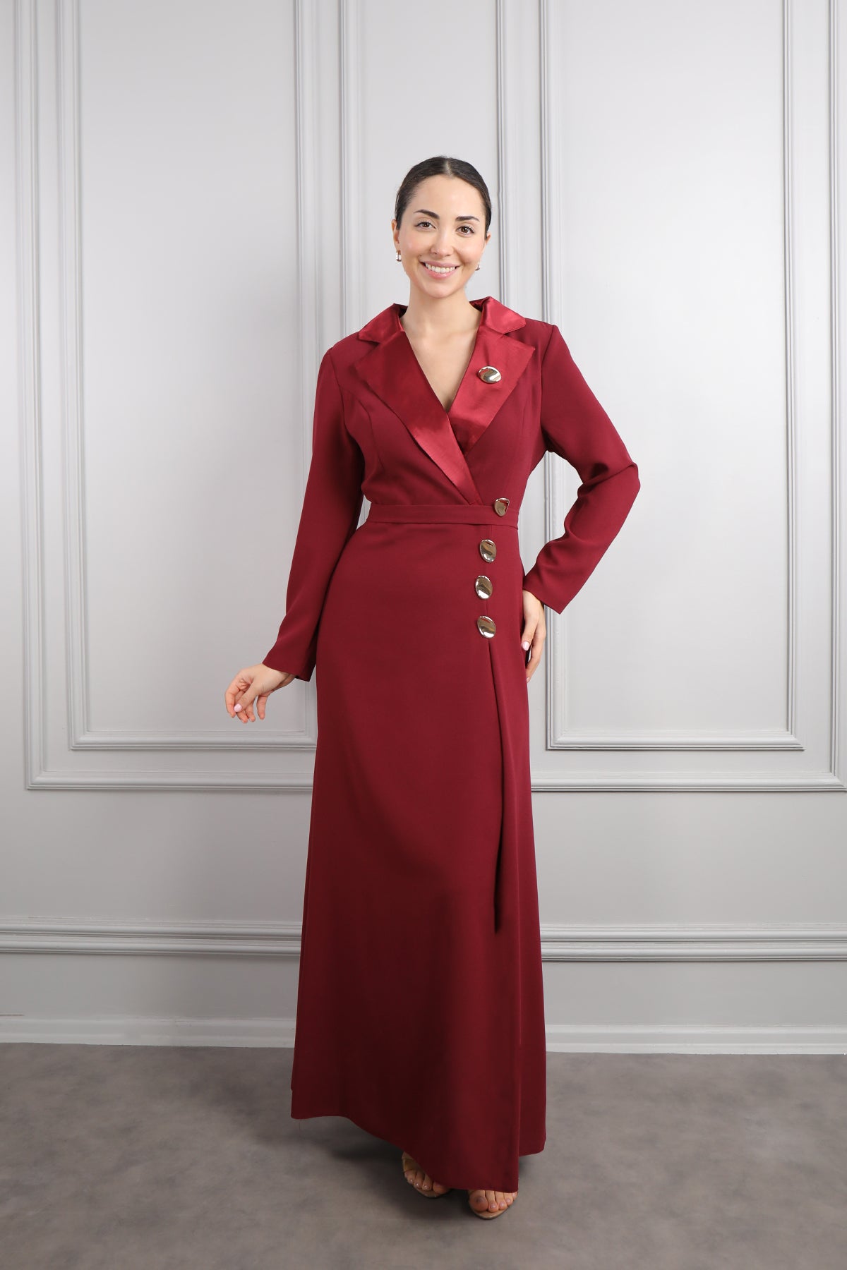 Önü Gold Düğme Detaylı Büyük Beden Elbise Bordo Özellikleri
