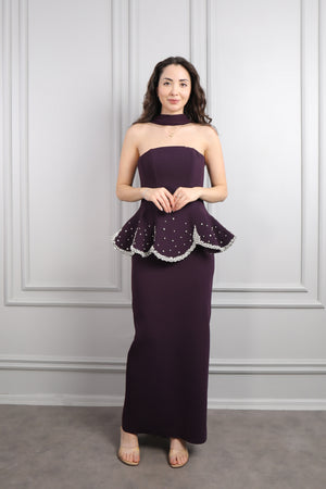 Modelin üzerindeki abiye 42 bedendir. Ürün tam kalıptır, kendi bedeninizi almanızı öneririz.