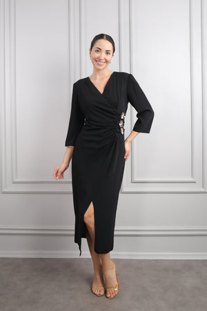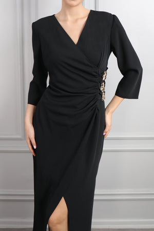Önü Düğmeli Çiçek Desenli Etek Takım Siyah