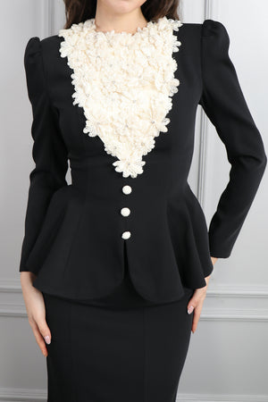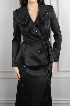 Önü Boncuk İşlemeli File Görünümlü Ceket Siyah Siyah Özellikleri