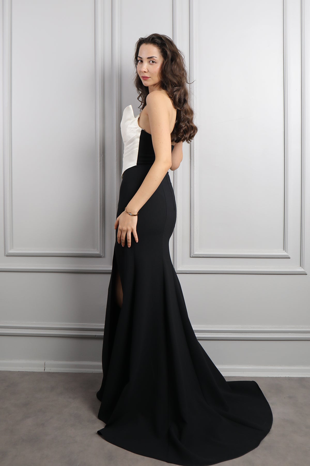 Straplez Drape Detaylı Yırtmaçlı Büyük Beden Abiye