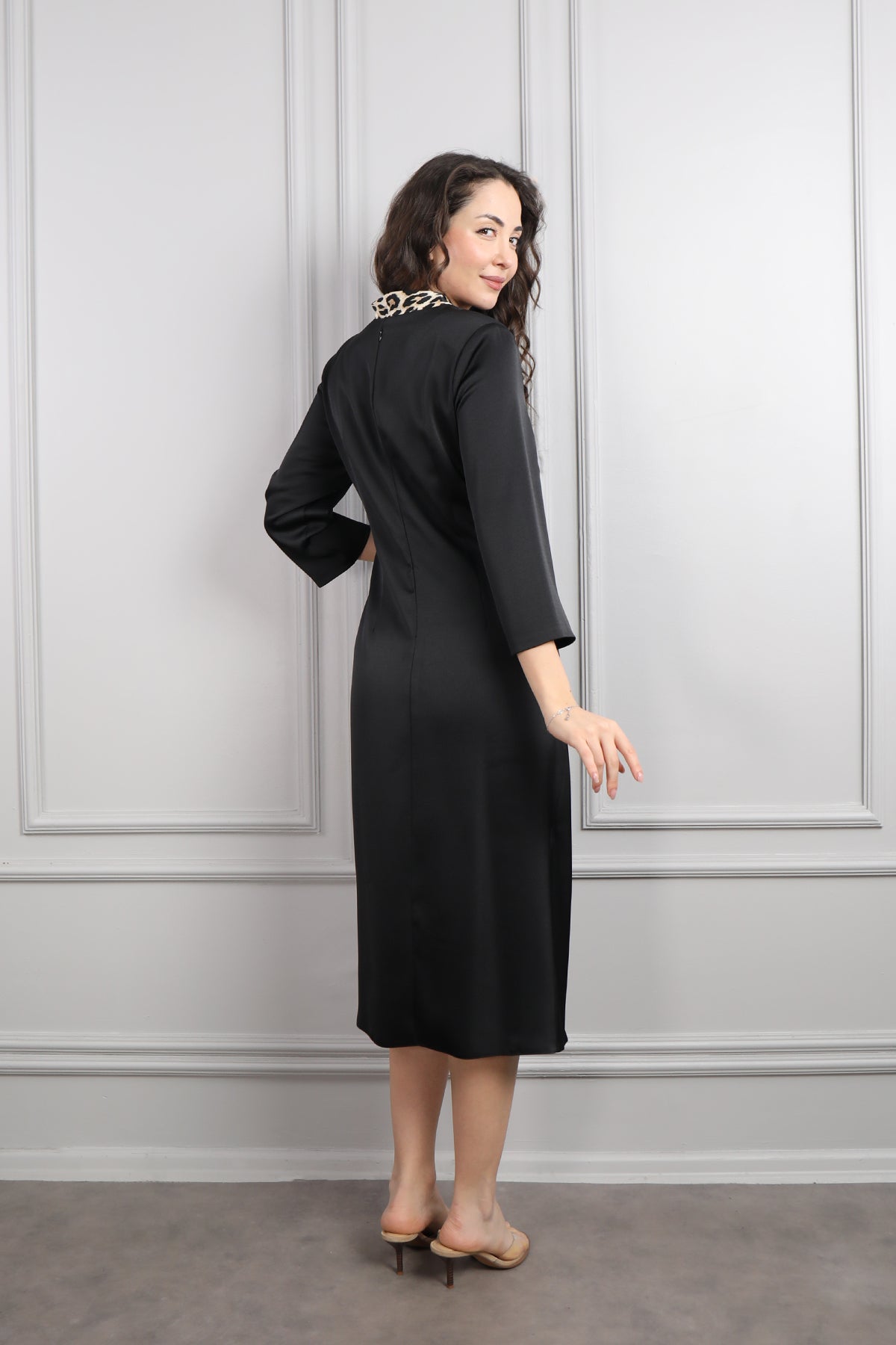 Modelin üzerindeki elbise 44 bedendir. Ürün tam kalıptır, kendi bedeninizi almanızı öneririz.