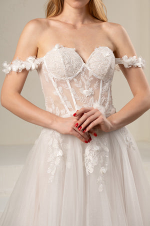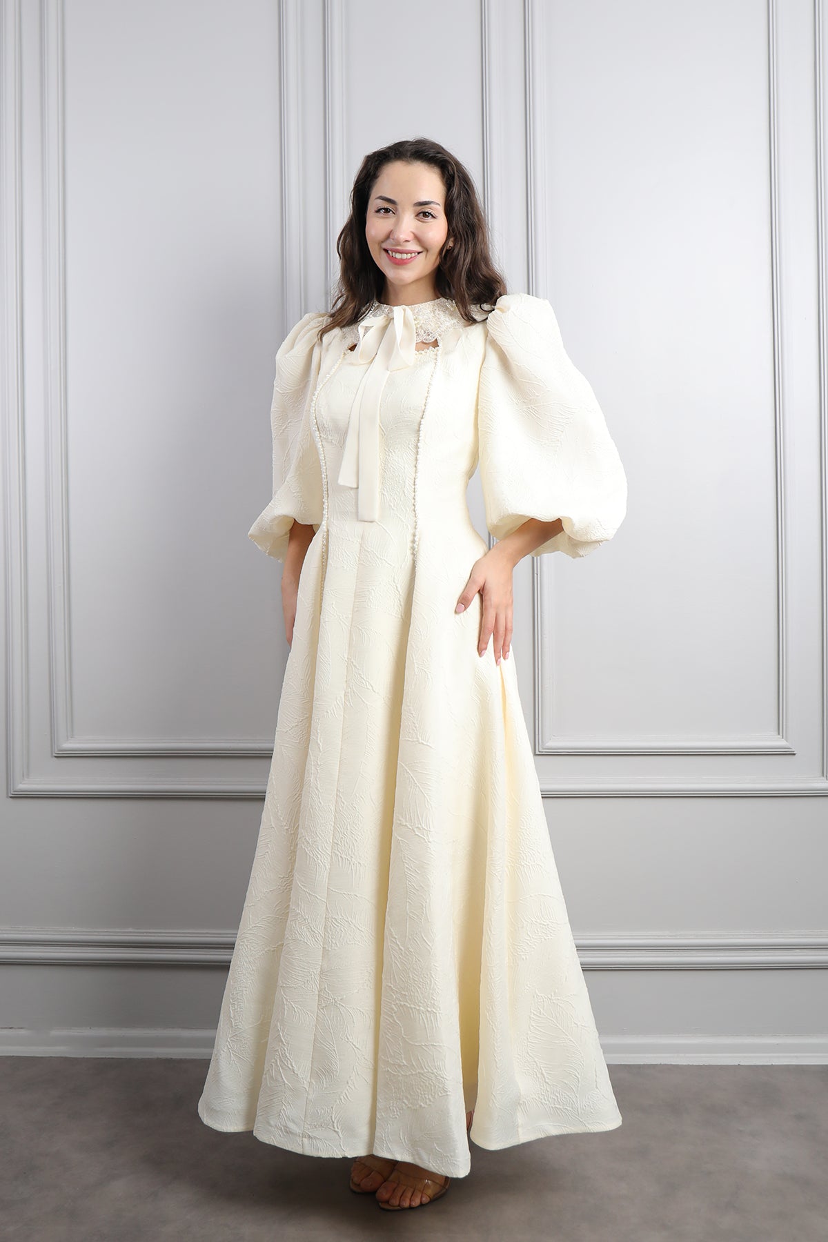 Yakası Boncuk İşlemeli Balon Kol Elbise Ekru Özellikleri
