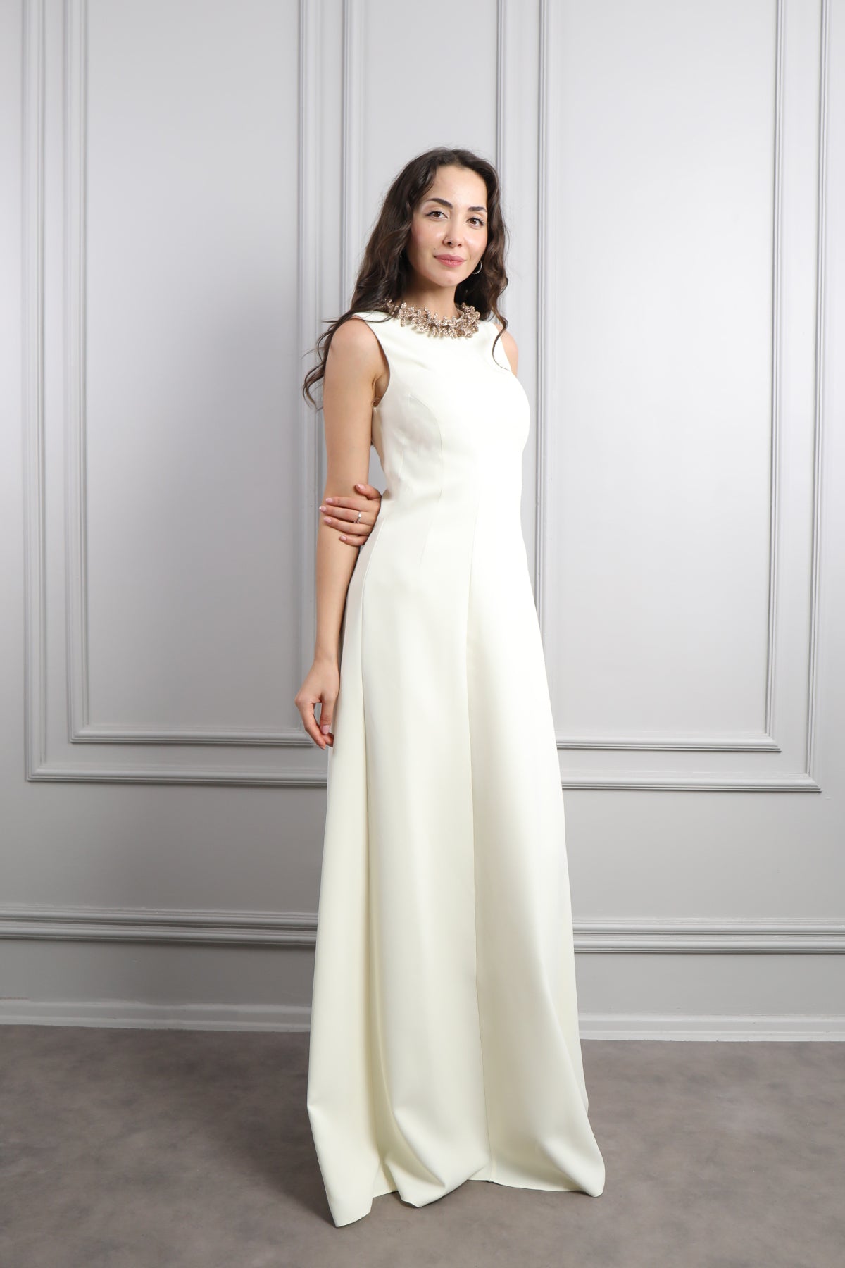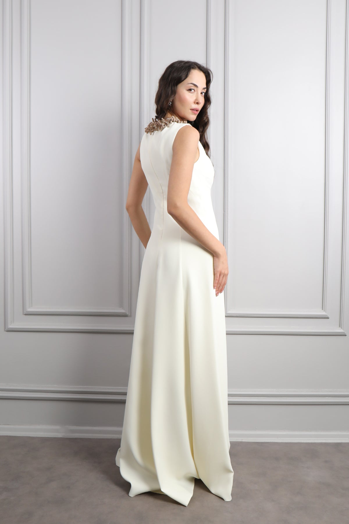 Yakası Taş Detaylı Büyük Beden Abiye Kemik