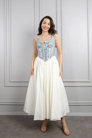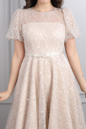 Yakası ve Önü İşlemeli Elbise Ekru Özellikleri