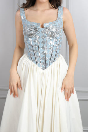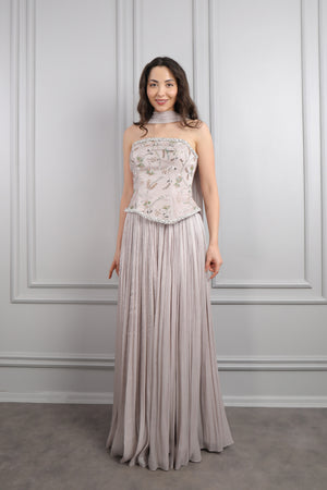 Yular yaka taş işlenerek süslenirken bel kısmından etek boyuna kadar taşlar inerek bütünlük sağlanmıştır. Belinden aşağı bol bir şekilde inen elbisemizin asimetrik görünümündeki eteğiyle bırakılarak modern tasarım kazandırılmıştır. Özel gün veya davetlerinizde tercih edeceğiniz elbisemizi seçeceğiniz için ideal bir tercih olacaktır.
